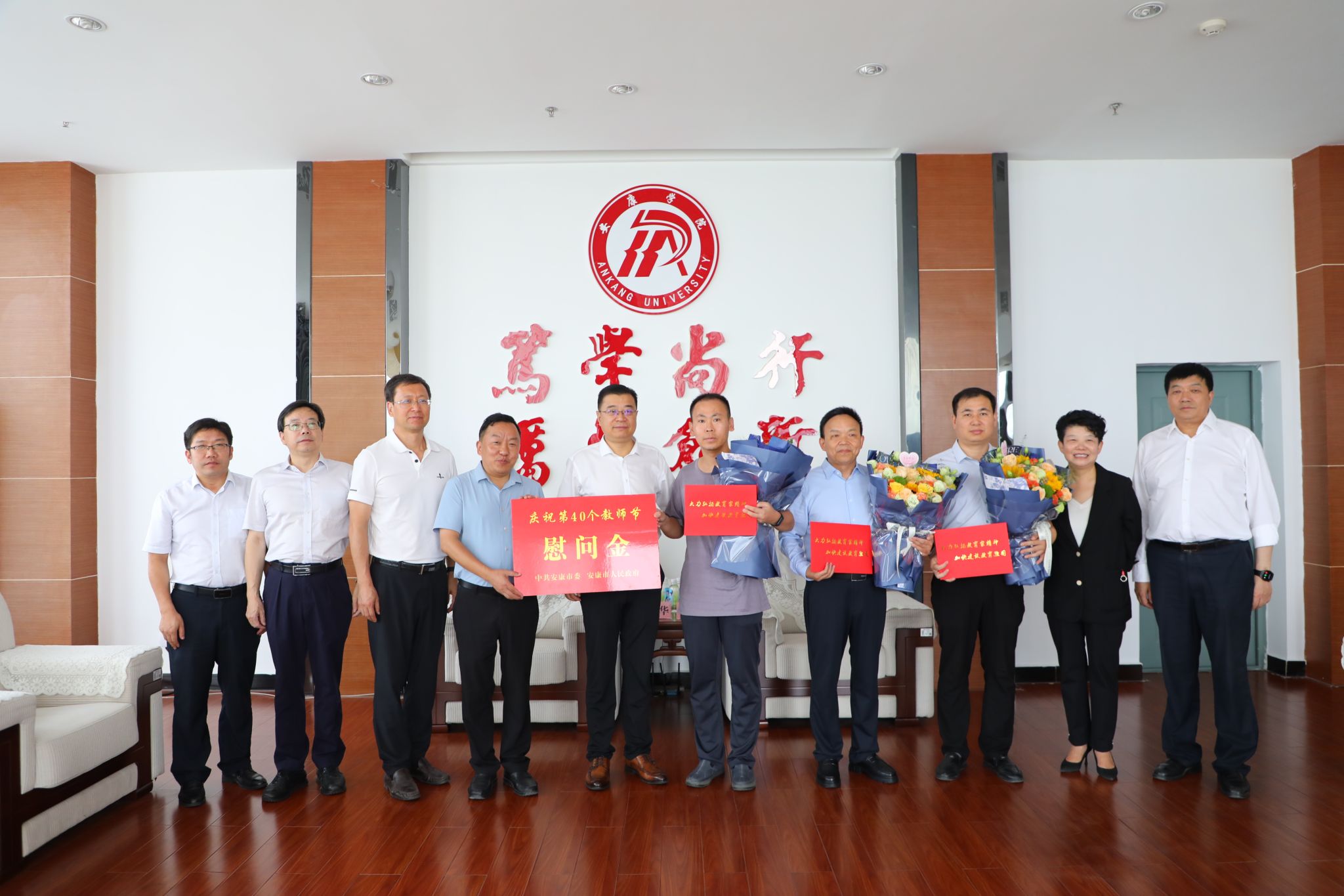 在第40个教师节前夕,安康市委副书记高晶华,市人大常委会党组副书记、副主任王孝成一行代表安康市委市政府到开元官网看望慰问,为全校教师送来节日问候和祝福。学校党委书记、校长钟生海陪同慰问。