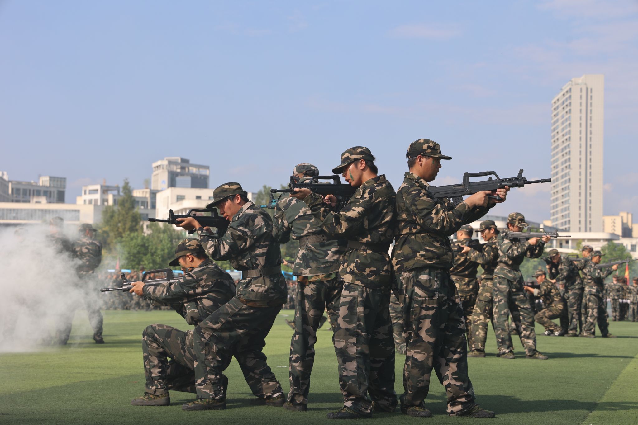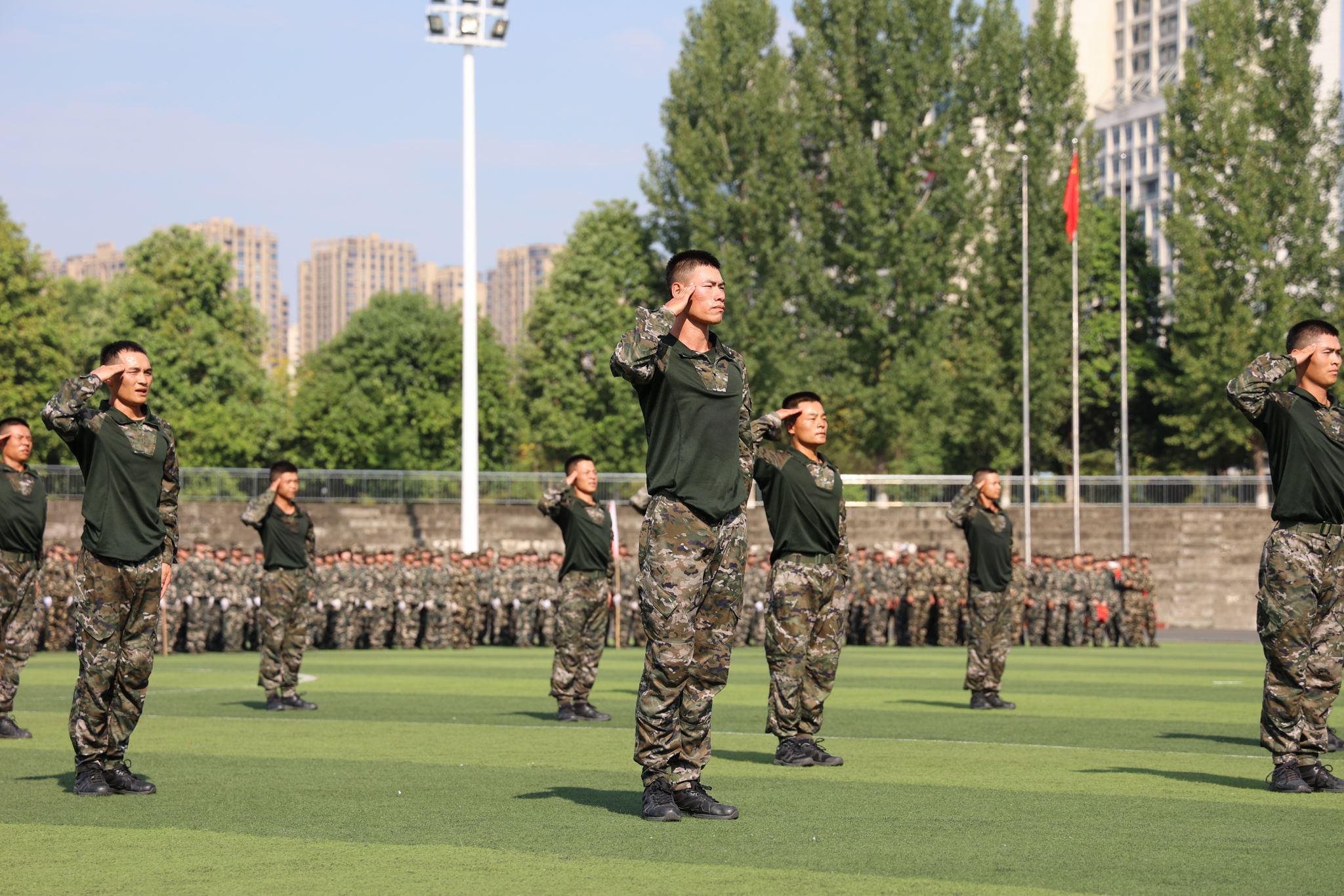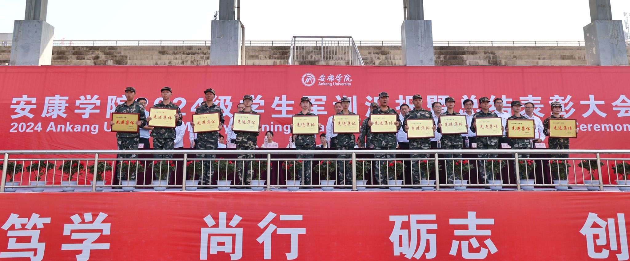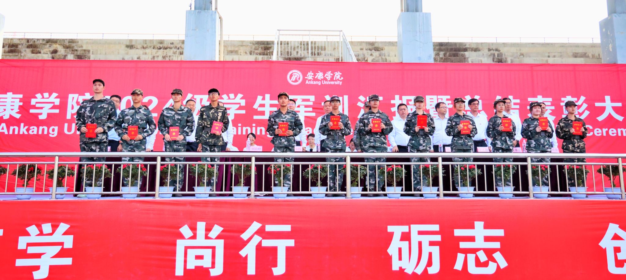 在全场师生激情澎湃的《歌唱祖国》声中,开元官网2024级学生军训总结汇演暨表彰大会圆满结束。