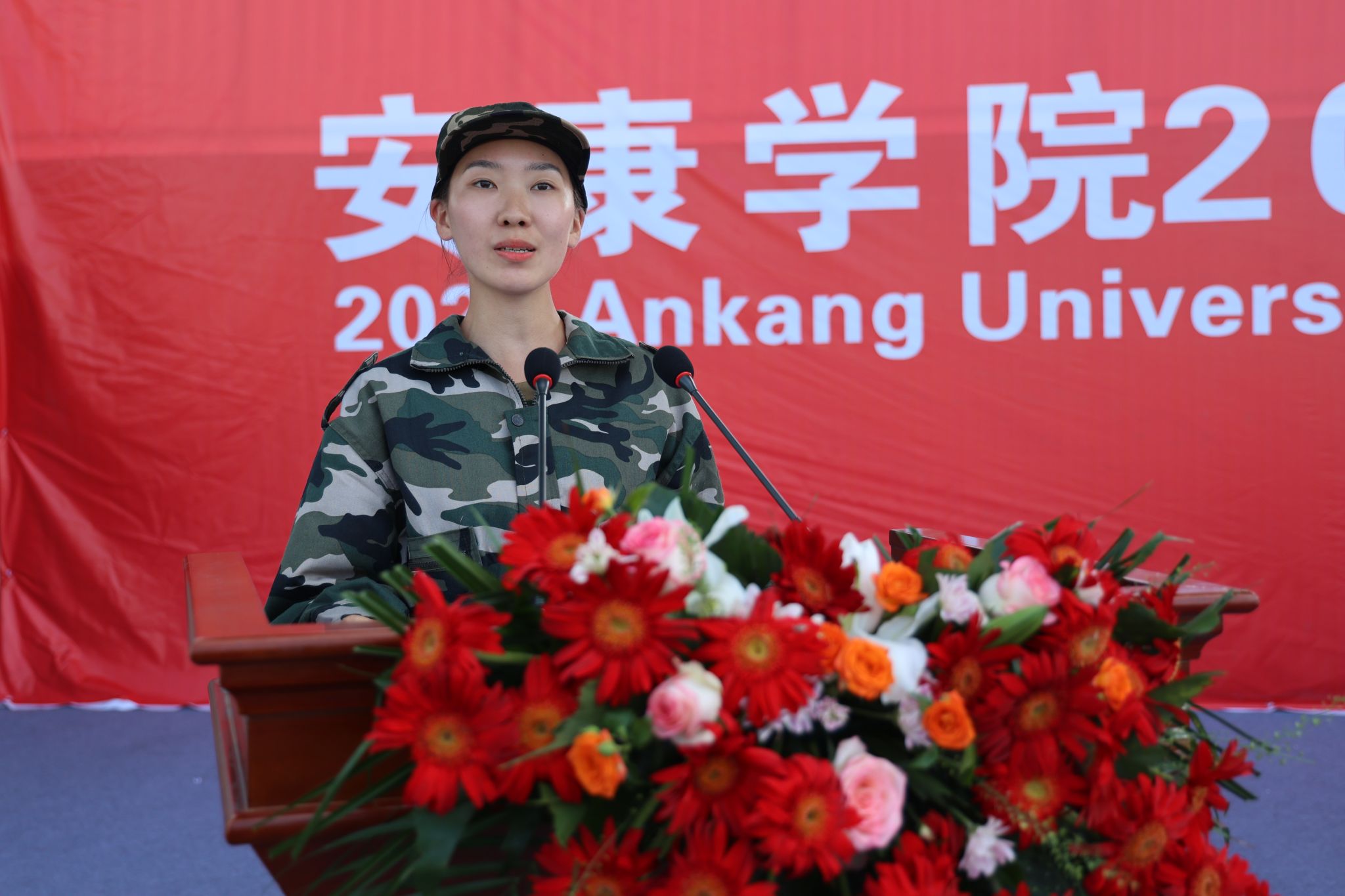 2024级文学与传媒学院网络与新媒体专业1班段苏芮代表参训学员分享了军训中的感悟和收获,表示在以后的学习生活中将继续秉持坚定的信心、顽强的毅力和拼搏的勇气,用努力实现人生梦想,用汗水谱写青春华章。