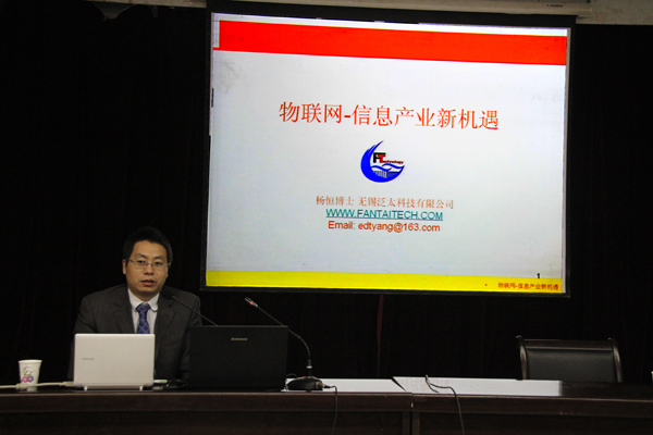 11月21日,无锡泛太科技有限公司CEO杨恒博士应邀来学院考察、讲学。下午4点,杨恒博士在图书馆六楼报告厅作了题为“物联网技术及在美国、新加坡等国家的研究与发展”的学术报告,电信系300余名师生参加了报告会。会议由电信系副主任陈守满教授主持。