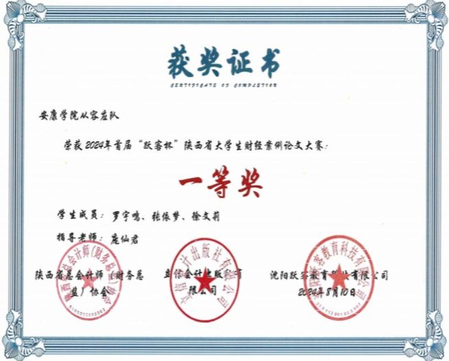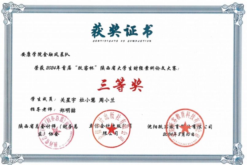 近日,开元官网经管学院师生在首届“跃客杯”陕西省大学生财经案例论文大赛中荣获佳绩。其中,KY开元集团官网从容应“队”(学生罗宇鸣、张依梦、徐文莉,指导教师庞仙君)荣获一等奖;KY开元集团官网“金融风暴”队(学生关星宇、杜小慧、周小兰,指导教师郑明喆)荣获三等奖。