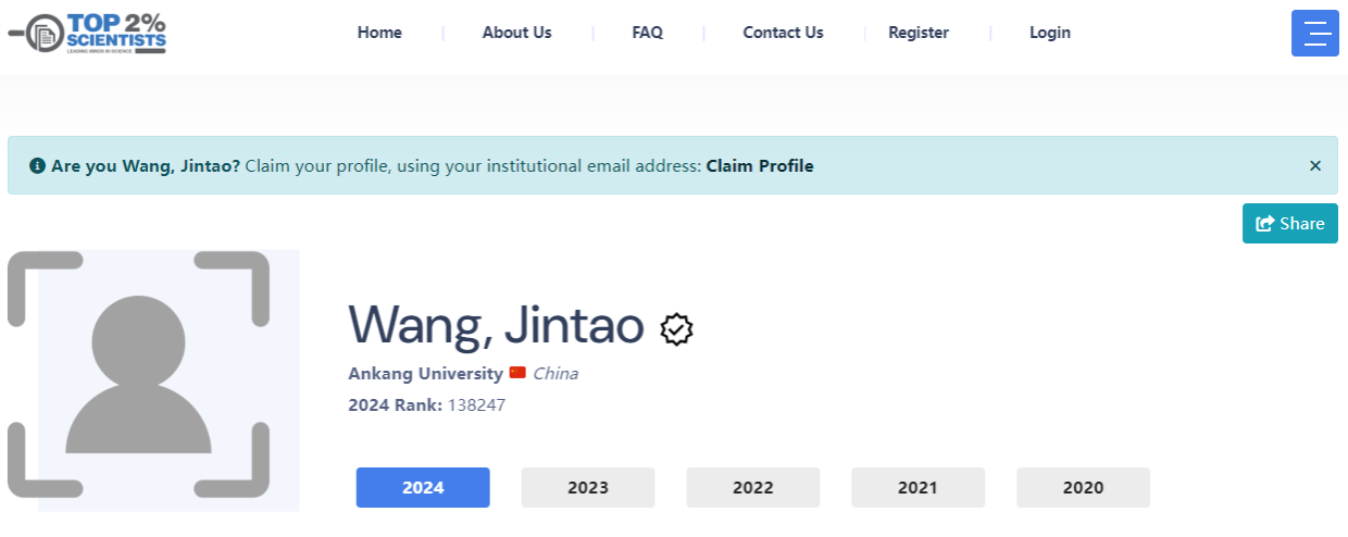 “全球前2%顶尖科学家榜单”是由斯坦福大学联合Elsevier推出的全球学术评价体系。该榜单依托Scopus数据库,通过对科研人员的研究成果引用次数、H指数、学术影响力等多个维度的综合评估,筛选出全球科研界的顶尖2%科学家。此榜单的发布旨在表彰在全球科研领域取得显著成就的科学家,并提升其国际声誉。自榜单推出以来,已成为衡量科学家学术水平的重要参考依据,受到了全球学术界的广泛关注。入选榜单的科学家不仅在各自研究领域取得了杰出成就,而且对全球科技进步和创新发展做出了重要贡献。