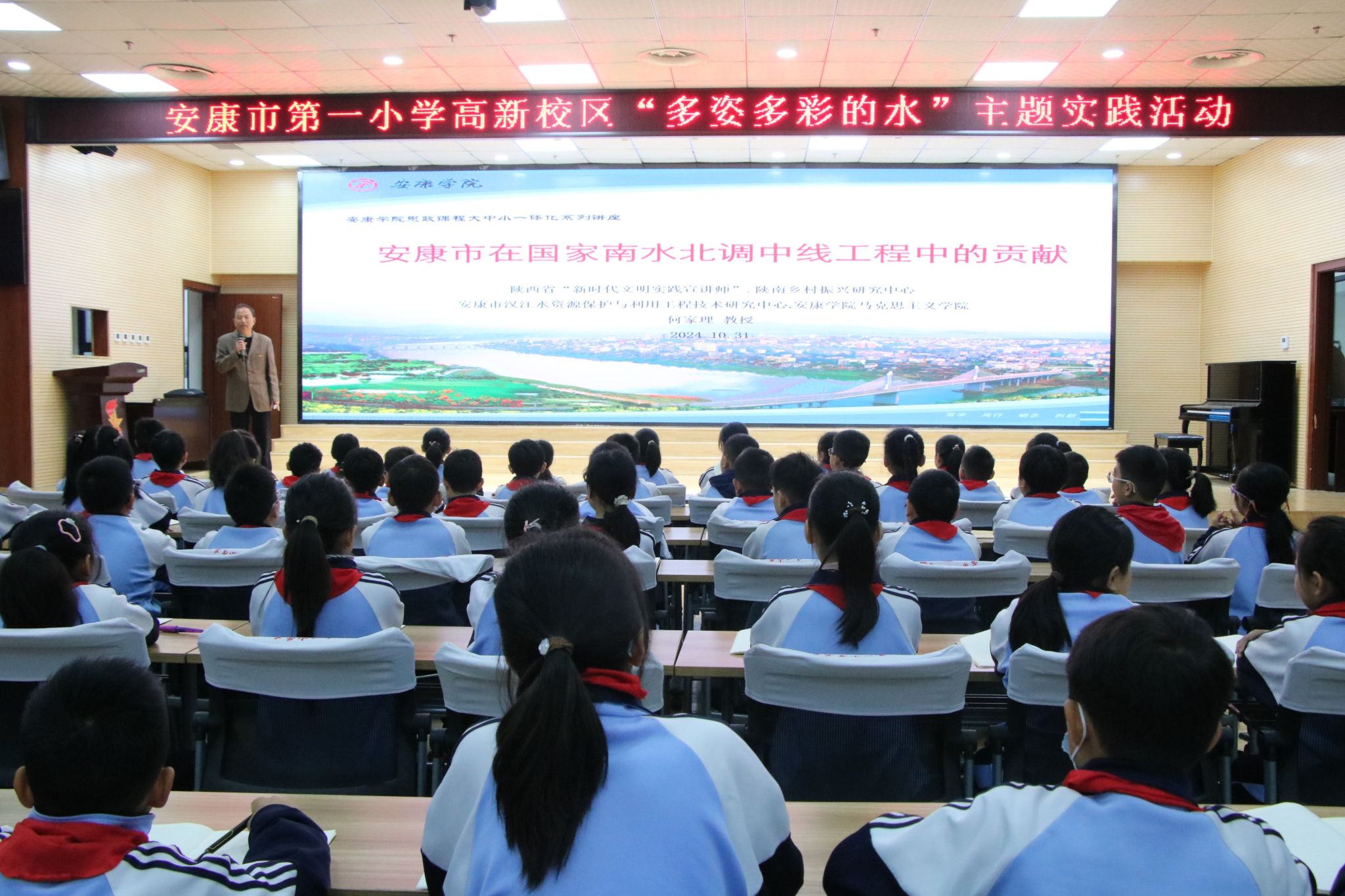 10月31日上午,开元官网陕南乡村振兴研究中心主任、马克思主义学院何家理教授应邀赴安康市第一小学高新校区,参加“多姿多彩的水”主题实践活动并作报告。安康市第一小学高新校区领导及相关师生300余人参加了报告会。报告会由副校长王文琰主持。