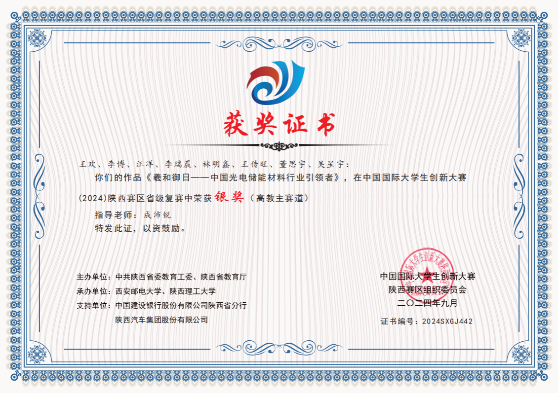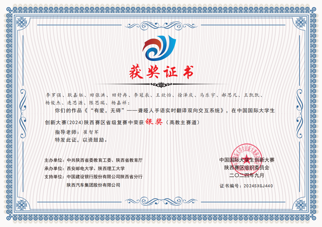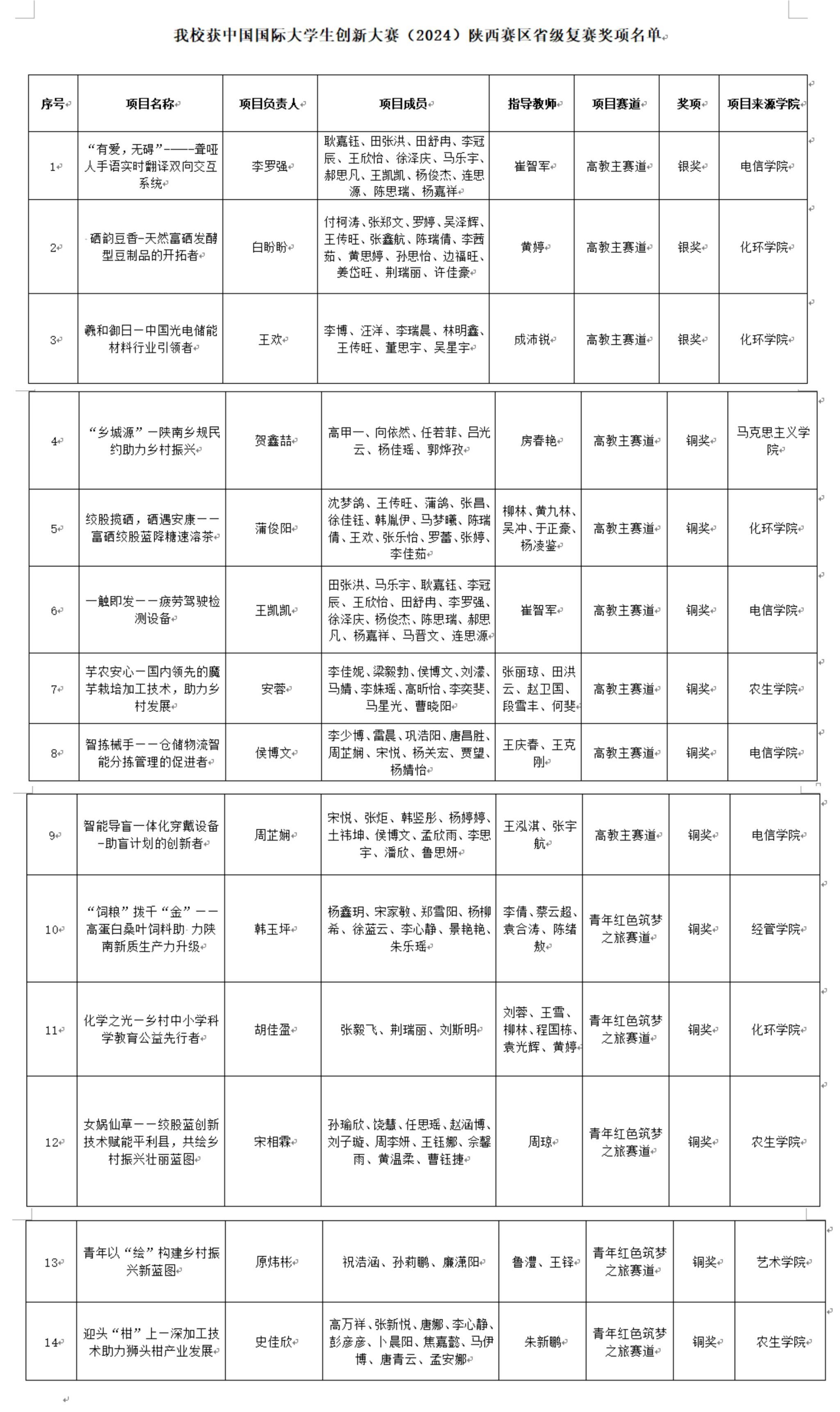 近日,根据《陕西省教育厅关于公布中国国际大学生创新大赛(2024)陕西赛区省级复赛结果的通知》,开元官网共有14个作品获奖,其中,高教主赛道获得银奖3项、铜奖6项;“青年红色筑梦之旅”赛道获得铜奖5项。开元官网化学与环境学院《硒韵豆香-天然富硒发酵型豆制品的开拓者》《羲和御日—中国光电储能材料行业引领者》、电子与信息工程学院《“有爱,无碍”——聋哑人手语实时翻译双向交互系统》获得高教主赛道银奖。
