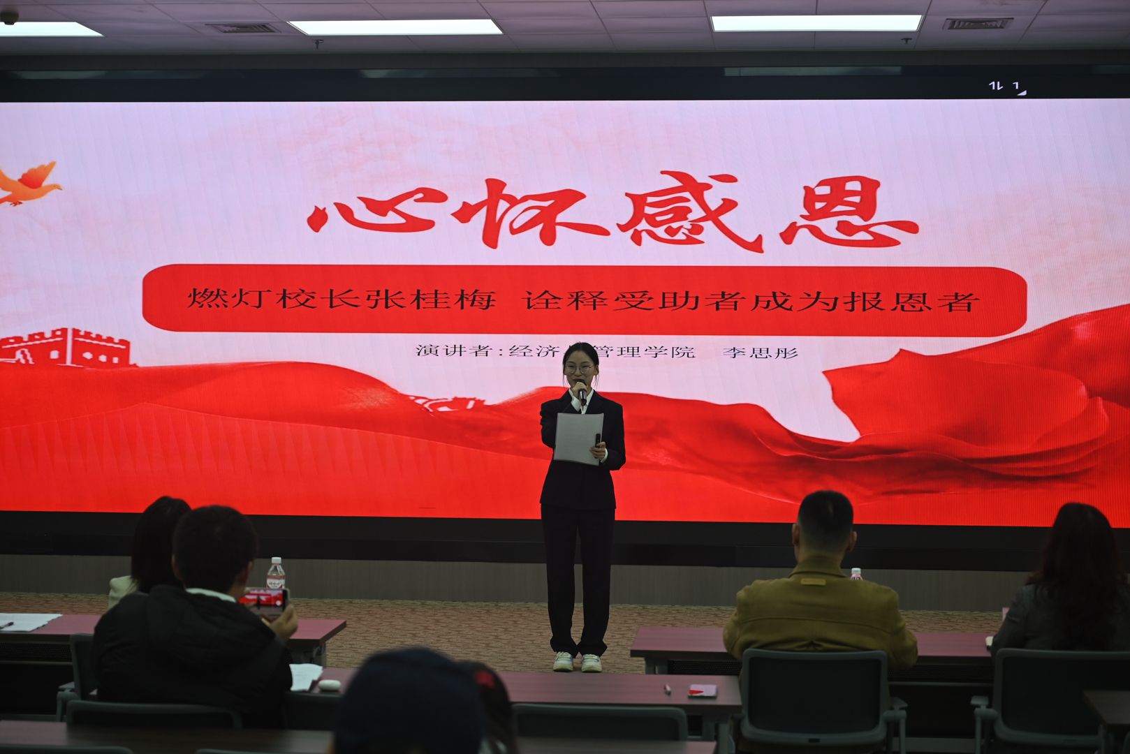 为进一步弘扬中华民族感恩、知恩、报恩的传统美德,激发广大青年学生的爱党、爱国、爱校热情,近日,校团委在江南校区图书馆报告厅举办了“感恩·励志·成长·蜕变”主题演讲比赛校级决赛。党政办、组织部、宣传部、团委相关教师担任比赛评委。