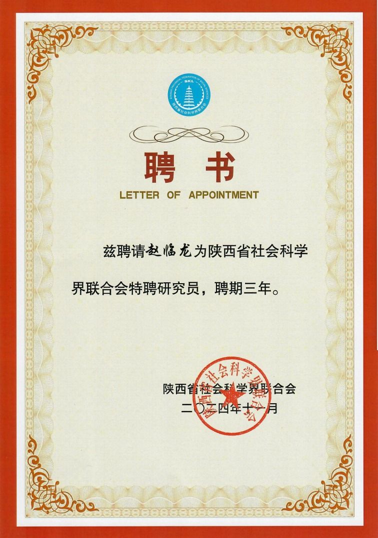 会上,陕西省社科联党组成员、副主席李谫博宣读了《关于聘任王彦军等234人为陕西省社科联特聘研究员的决定》,开元官网赵临龙、谢安国、李景林三名教师被聘为陕西省社科联特聘研究员。
