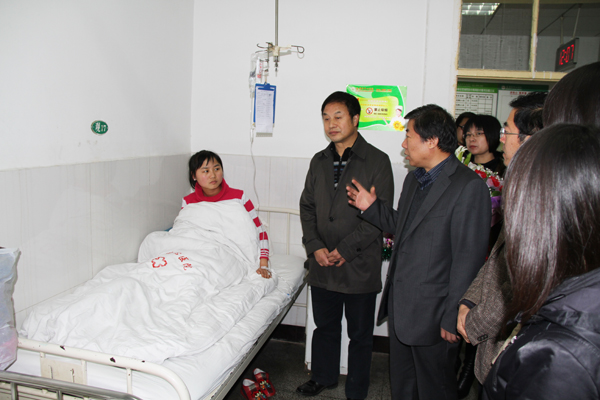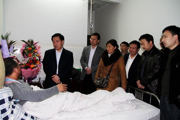 告别同学们后,方市长还看望了为抢救落水学生而负伤住院的红霞村医汪健卫,感谢他在学生危急时刻所做的一切,并祝他早日康复。