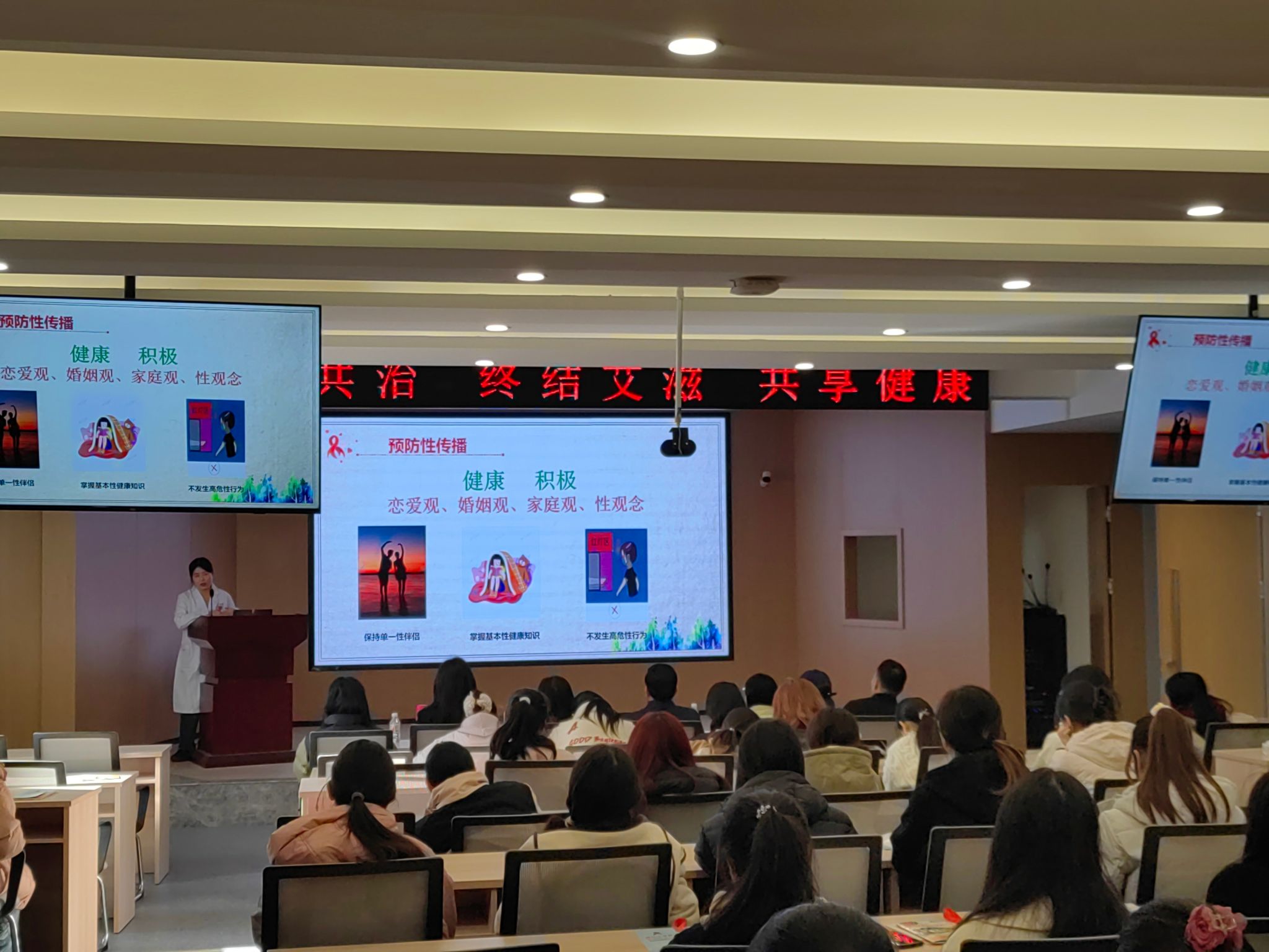 11月29日下午,在江北乡村振兴科技楼多功能报告厅,安康市疾病预防控制中心马倩做了题为“预防艾滋病 你我共参与”的艾滋病防治讲座。马医生结合真实案例和详细数据全面阐述了艾滋病的传播途径、危害性及预防措施,让学生们对艾滋病有了深入全面的认识。