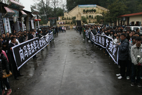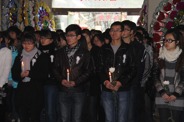 我们记得你那阳光般的笑容,记得你那质朴的声音;我们还记得你通知大家活动的飞信,记得你从家乡带来的凉皮,更记得你在那危难时刻带给我们的震撼……我们会永远铭记!