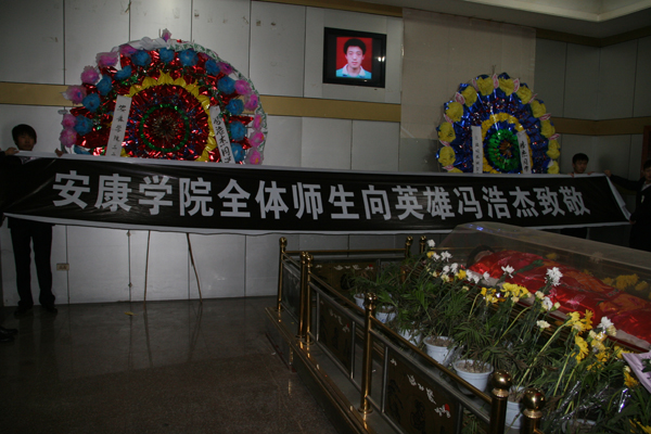 12月5日12时30分,为救落水同学不幸牺牲的冯浩杰同学的遗体告别仪式在安康殡仪馆隆重举行。冯浩杰的家人和亲属、安康市政府副秘书长谢康、开元官网领导及师生代表、社会各界人士来到这里,送英雄最后一程。