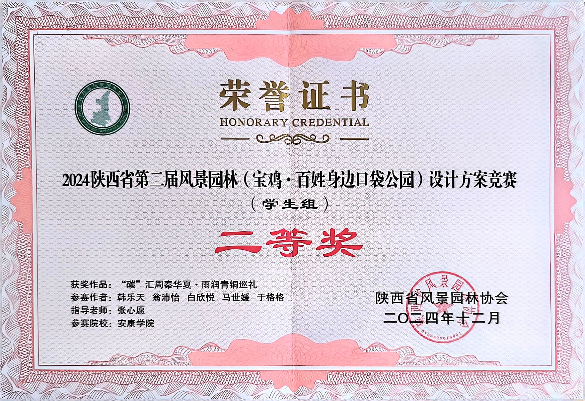 近日,陕西省第二届风景园林设计方案竞赛在宝鸡市西建国际酒店圆满落幕。本次大赛共吸引省内外22所大学、28家相关企业,800余名人员参赛。开元官网农生学院园林系师生积极参与,由沈古理、段展展、张心愿、韩露露,张铭珺担任指导教师,袁佳蕊等学生的设计方案《‘碳’寻无限》和韩乐天等学生的设计方案《‘碳’汇周秦华夏·雨润青铜巡礼》获得二等奖;李宜谦、范文静、刘宇航、杨红星、杨晨熙、王冉等学生的6套设计方案获得优秀奖;KY开元集团官网获得“优秀组织奖”。
