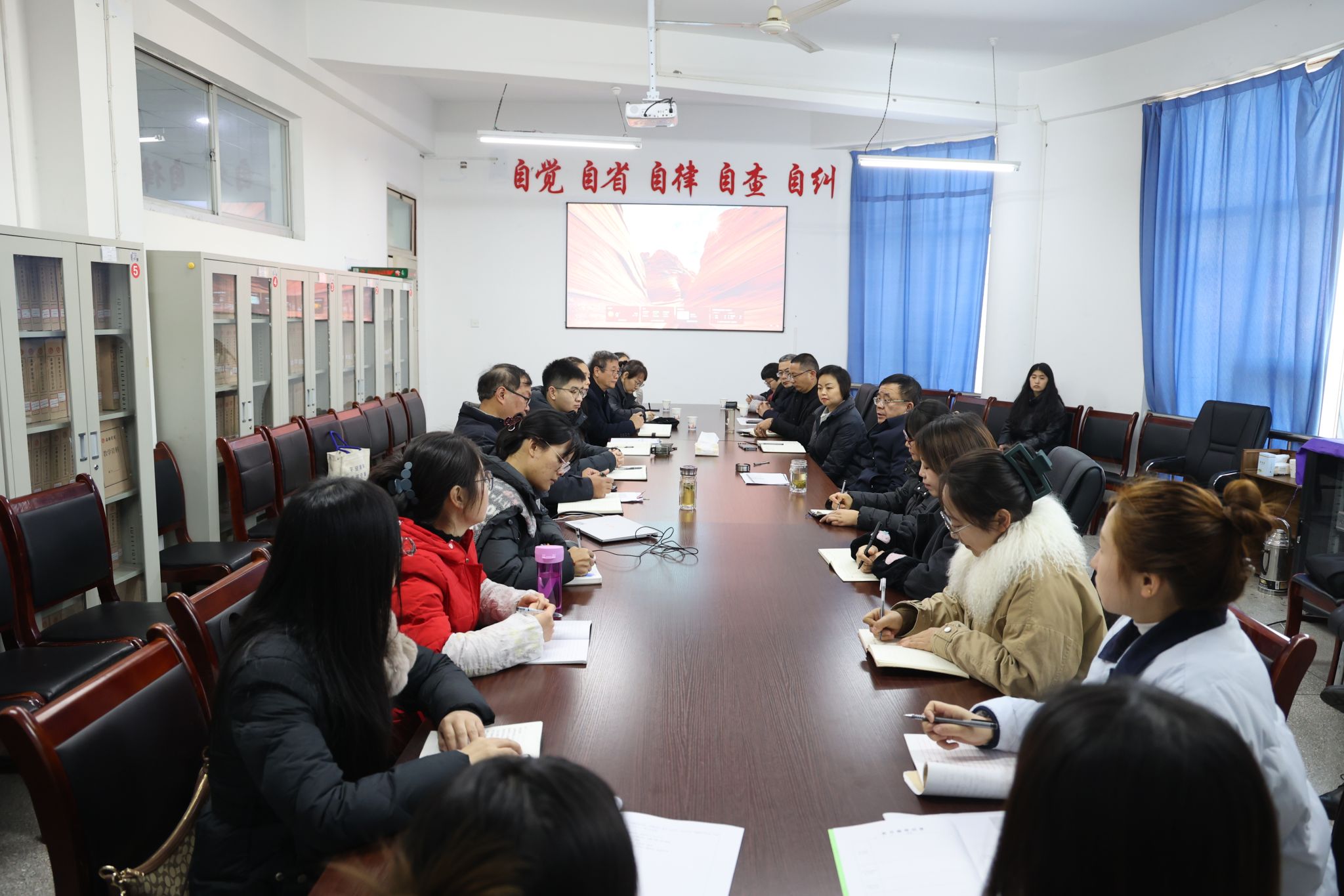 近日,校长余劲赴教育学院开展工作调研,并在江南校区1407会议室召开调研交流会议。教育学院领导班子成员、在院教授及博士、小学教育专业全体教师参加了调研会。