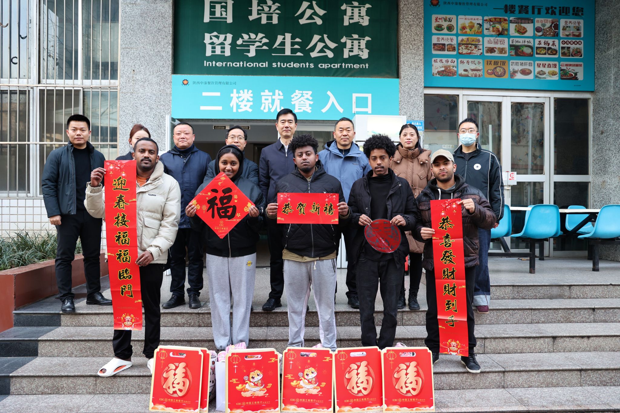 在外籍师生公寓,校领导为在校留学生和外籍教师送上新春祝福和新年礼包,并与他们热情交流,祝愿大家在异国他乡也能感受到家的温暖,度过一个祥和温馨的春节;表示学校将持续深化精细化服务,强化暖心保障措施,全力营造更加优质的学习、工作和生活环境;鼓励留学生在新的一年里勤奋学习,取得更大的进步,成为中外文化交流融合的桥梁与纽带。外籍师生们对学校长期以来给予的关怀表达了衷心的感谢,表示一定会牢记嘱托,度过一个平安、健康、充实、有意义的假期。
