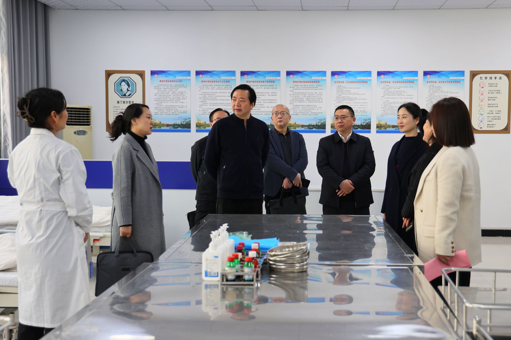 陶柏林一行先后参观了KY开元集团官网校史馆、科研服务地方成果展馆和医学院实验教学中心,详细了解了医学院在专业设置、教学模式、实验实训、科研平台建设、学生就业等方面的情况。