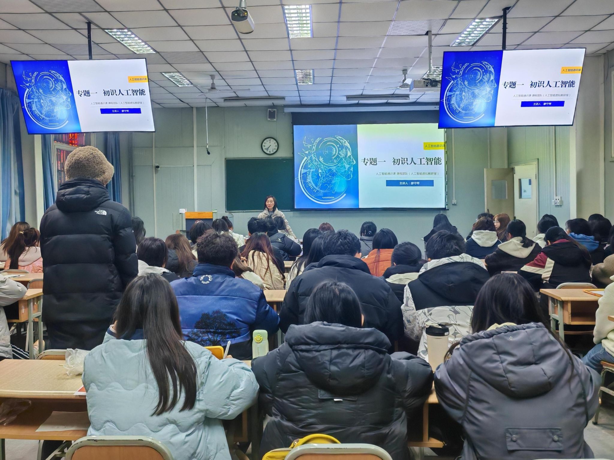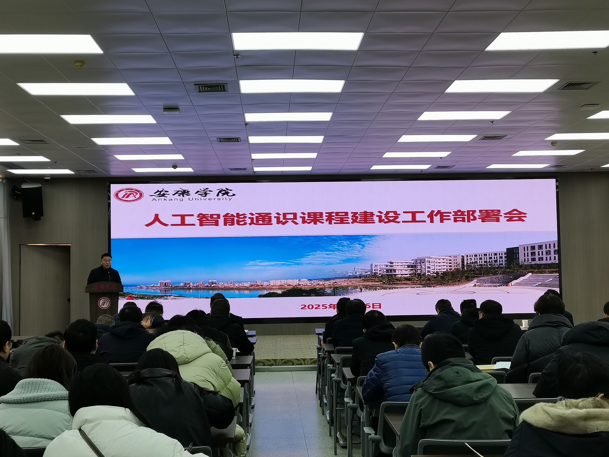 虚拟教研室聚力,教研协同破难题。为确保课程高质量实施,学校成立“人工智能通识课程虚拟教研室”,由教务处、电子与信息工程学院牵头,汇聚各二级学院骨干教师及行业专家,形成跨学科教研共同体。2025年1月16日,教研室召开首次课程建设推进会,邀请北京师范大学王学松教授、北京林业大学崔晓晖副教授作专题报告,为学校人工智能通识课程建设提供了多层次、多角度的指导与创新思路。2月15日,教研室召开新学期教学工作安排暨课程教学研讨会,对课程教学大纲进行全面解读并制定了详细的教学计划和任务分工。