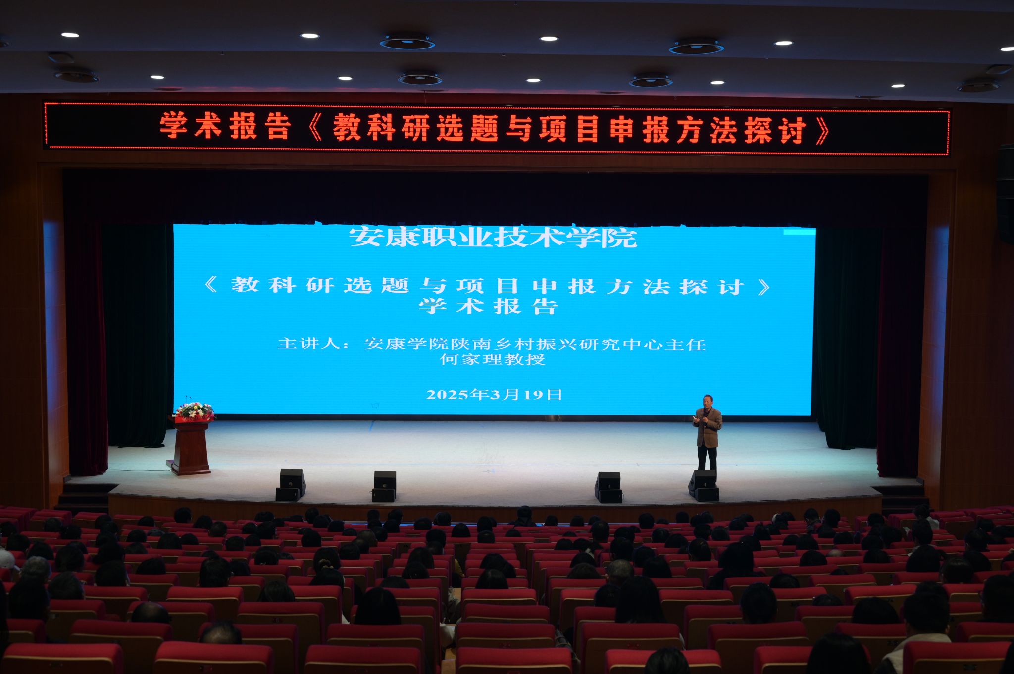 3月19日下午,应安康职业技术学院邀请,开元官网陕南乡村振兴研究中心主任何家理教授在该校二楼学术报告厅为全校教师作题为《教科研选题与项目申报方法探讨》的学术报告,全校400余名无课教师参加了会议。会议由安康职业技术学院党委委员、副院长蔡彬主持。