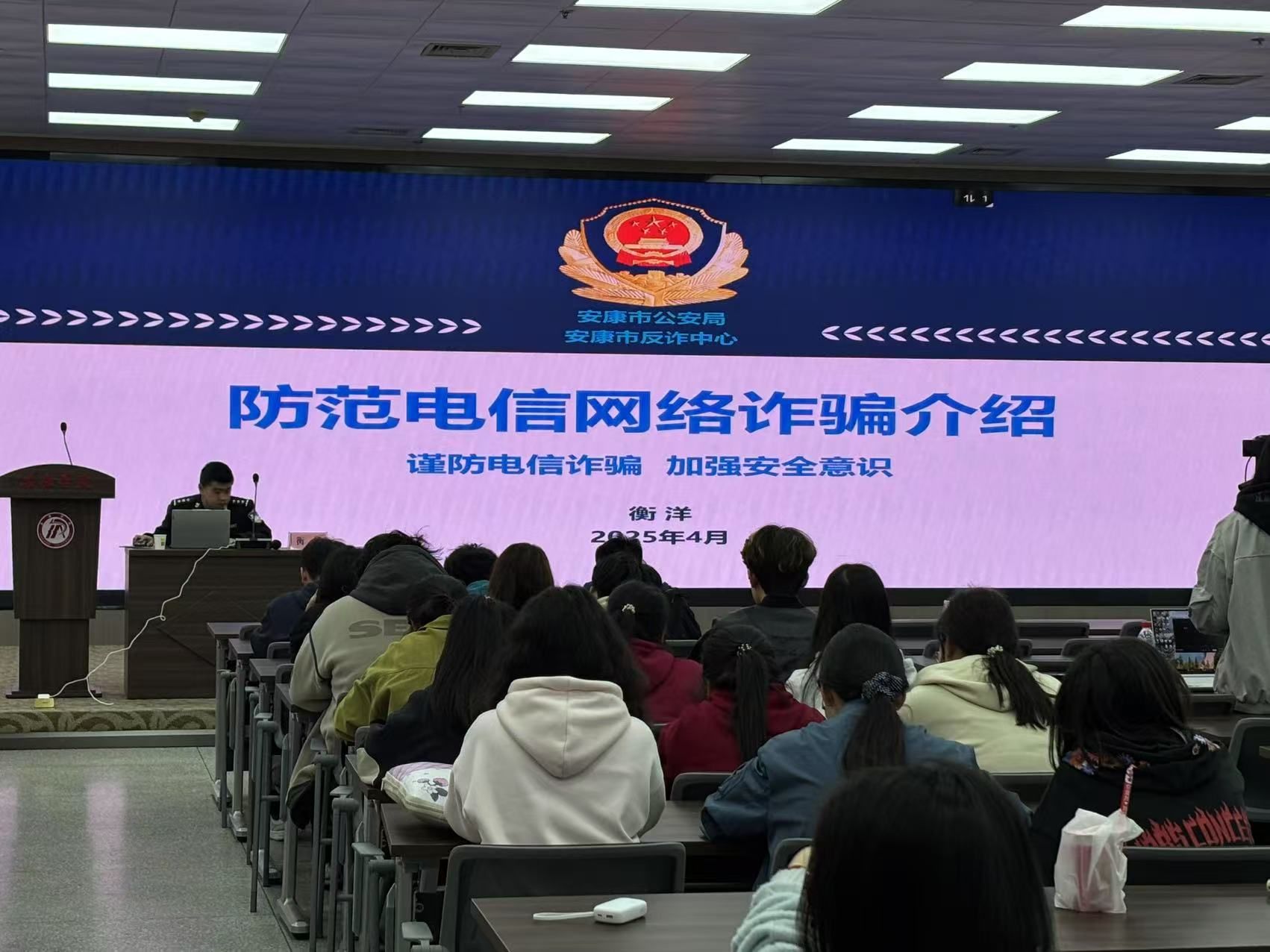 讲座中,安康市公安局民警衡洋结合多年办案经验,围绕电信网络诈骗的本质特征、本地诈骗犯罪严峻态势、防范要点及遭遇诈骗后的科学处置方法四个维度进行了系统讲解。衡洋以近年来大学校园内发生的典型案例为切入点,生动揭露了电信诈骗的多样手段,包括网络客服退款骗局、贷款信用卡诈骗等。他详细分析了各类诈骗手法的特点、运作机制及识别技巧,引导师生从诈骗分子的话术、行为模式等细微之处精准辨别陷阱。