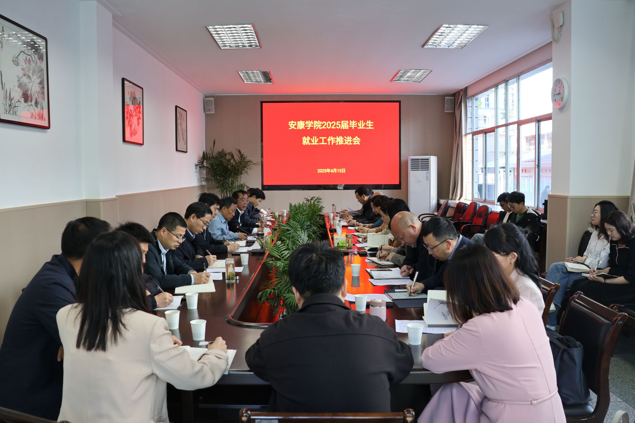屈险峰传达了全省高校毕业生等青年就业创业视频会议精神,通报了近期访企拓岗专项行动情况,强调了2025届毕业生就业工作重点任务。学工部部长芦伟通报了2025届毕业生就业工作进展情况和下一阶段的主要工作。