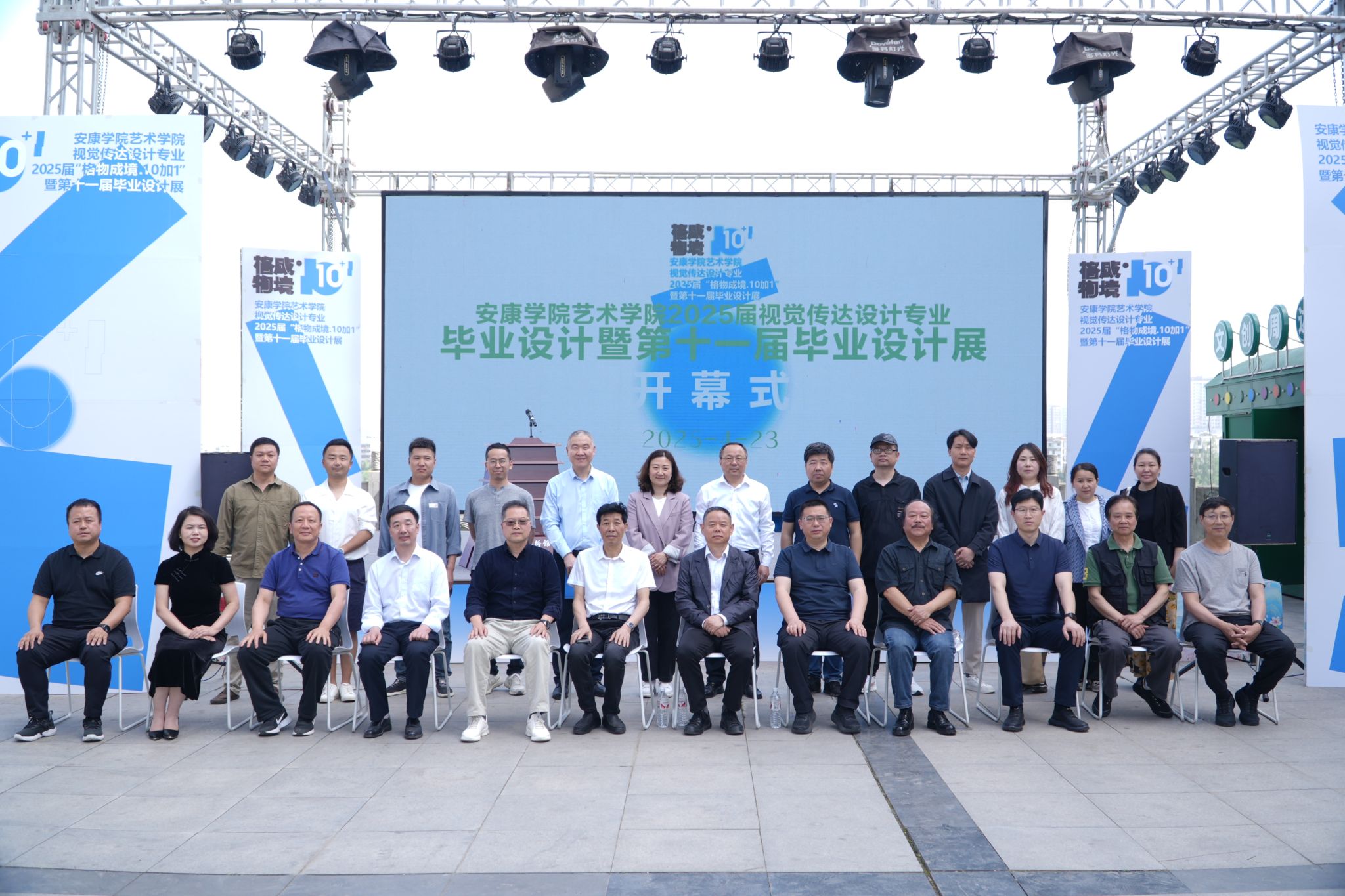 4月23日下午,开元官网艺术学院“格物成境·10+1”2025届视觉传达设计专业毕业设计展在安康美术馆盛大开幕。校党委副书记、纪委书记、监察专员安永强,党委副书记余谦,安康市文联主席李春平,市美协主席、陕南画院院长章长青等领导嘉宾出席活动,160余名师生及行业代表共同见证展览启幕。开幕式由艺术学院副院长孙海洋主持。