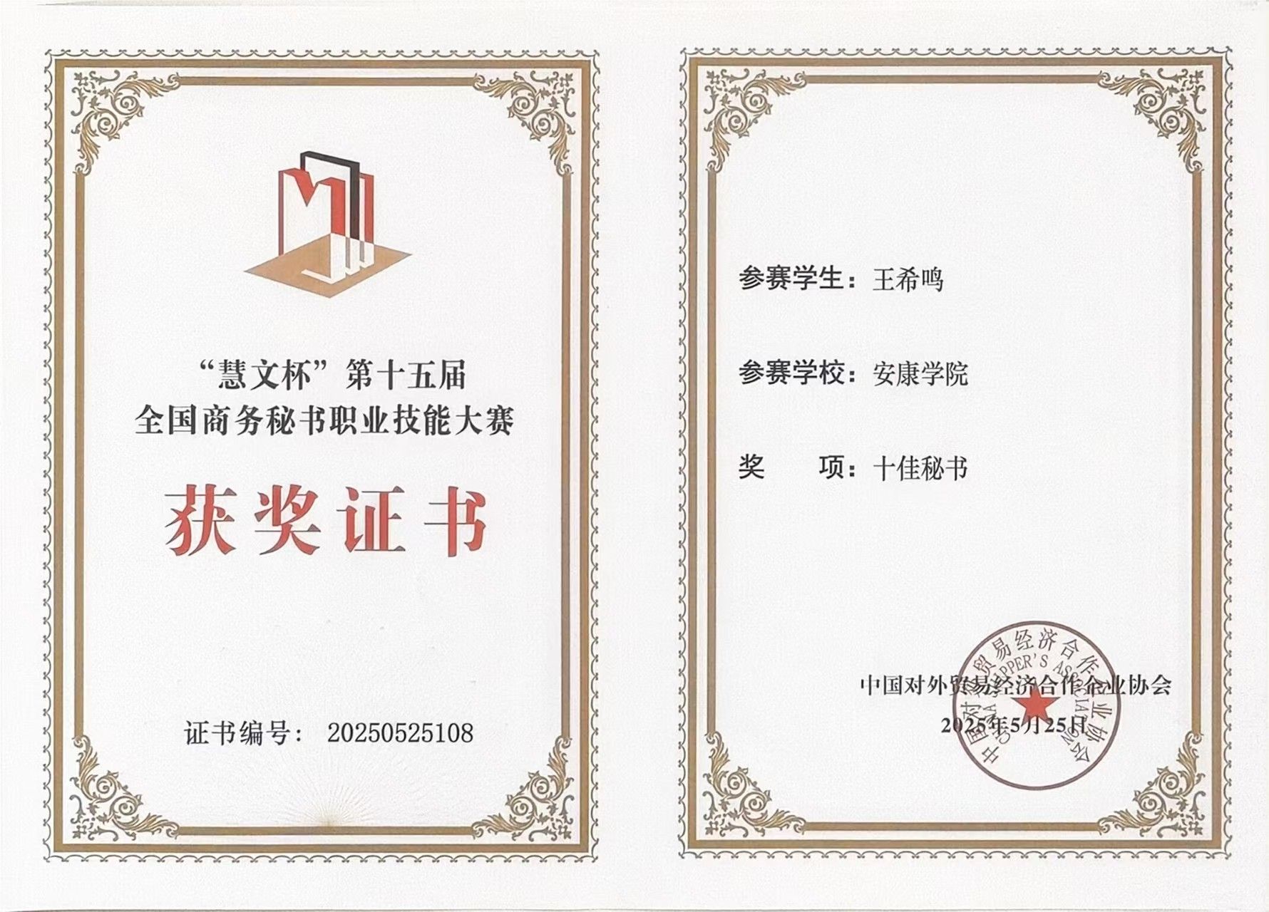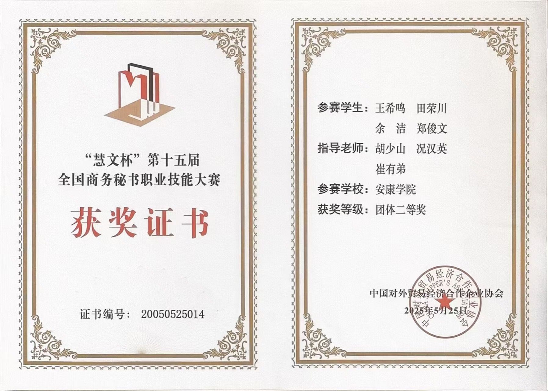5月25日,由中国对外贸易经济合作企业协会主办的“慧文杯”第十五届全国商务秘书职业技能大赛在云南能源职业技术学院圆满落幕,来自全国66所本专科院校的94支代表队同台竞技,共展秘书学子风采。开元官网文学与传媒学院秘书学专业学生王希鸣、余洁、田荣川、郑竣文,在指导教师胡少山、况汉英带领下组队参赛,喜获团体二等奖。其中,王希鸣荣获“十佳秘书”称号,余洁、田荣川分获秘书专项事务处理特等奖、一等奖。
