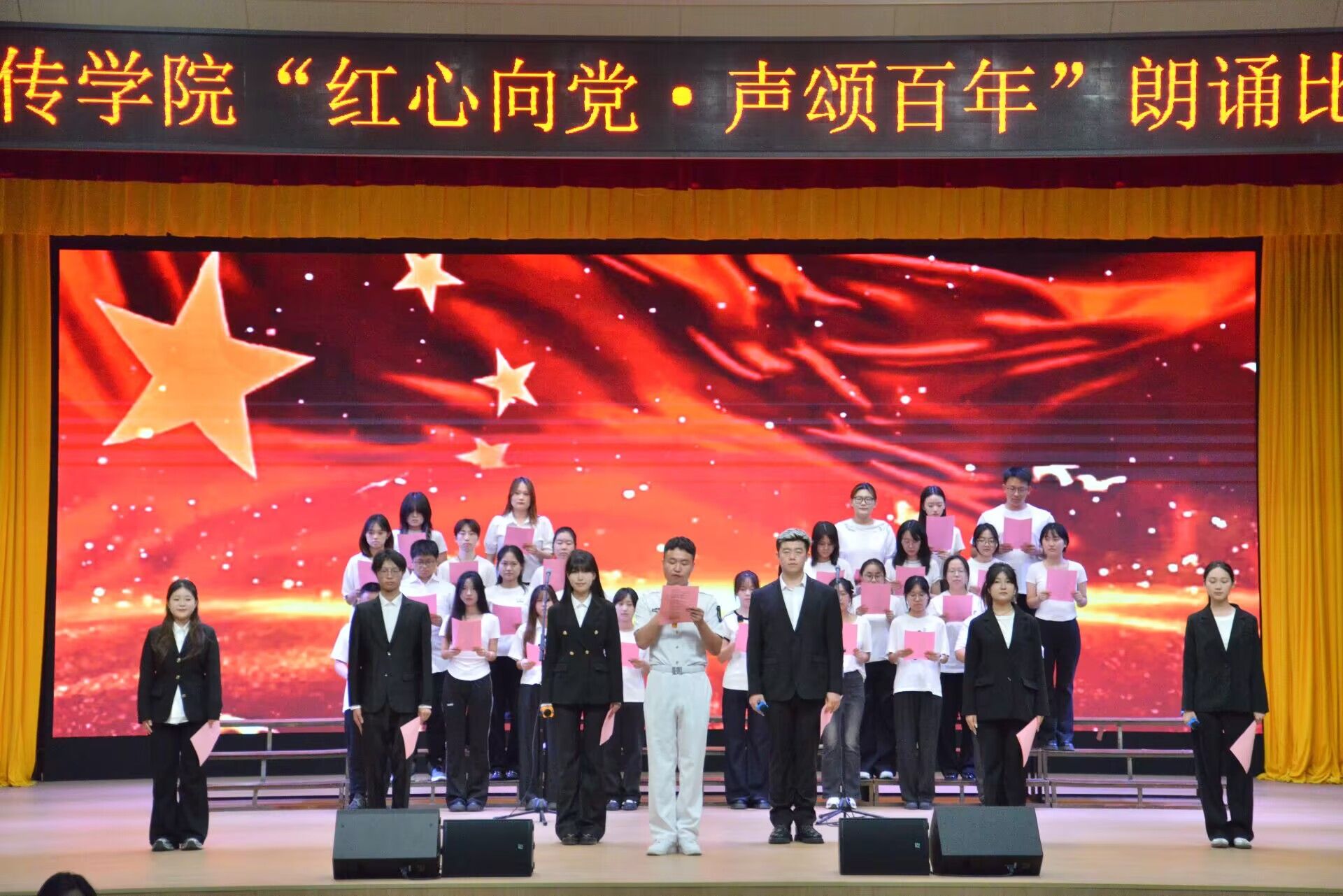 为纪念中国人民抗日战争暨世界反法西斯战争胜利80周年,大力弘扬爱国主义精神,5月29日晚,文学与传媒学院在江南校区大礼堂举办“红心向党 声颂百年”主题朗诵比赛。学院师生以声传情、以诵致礼,用充满张力的语言艺术致敬革命先烈、礼赞百年征程。