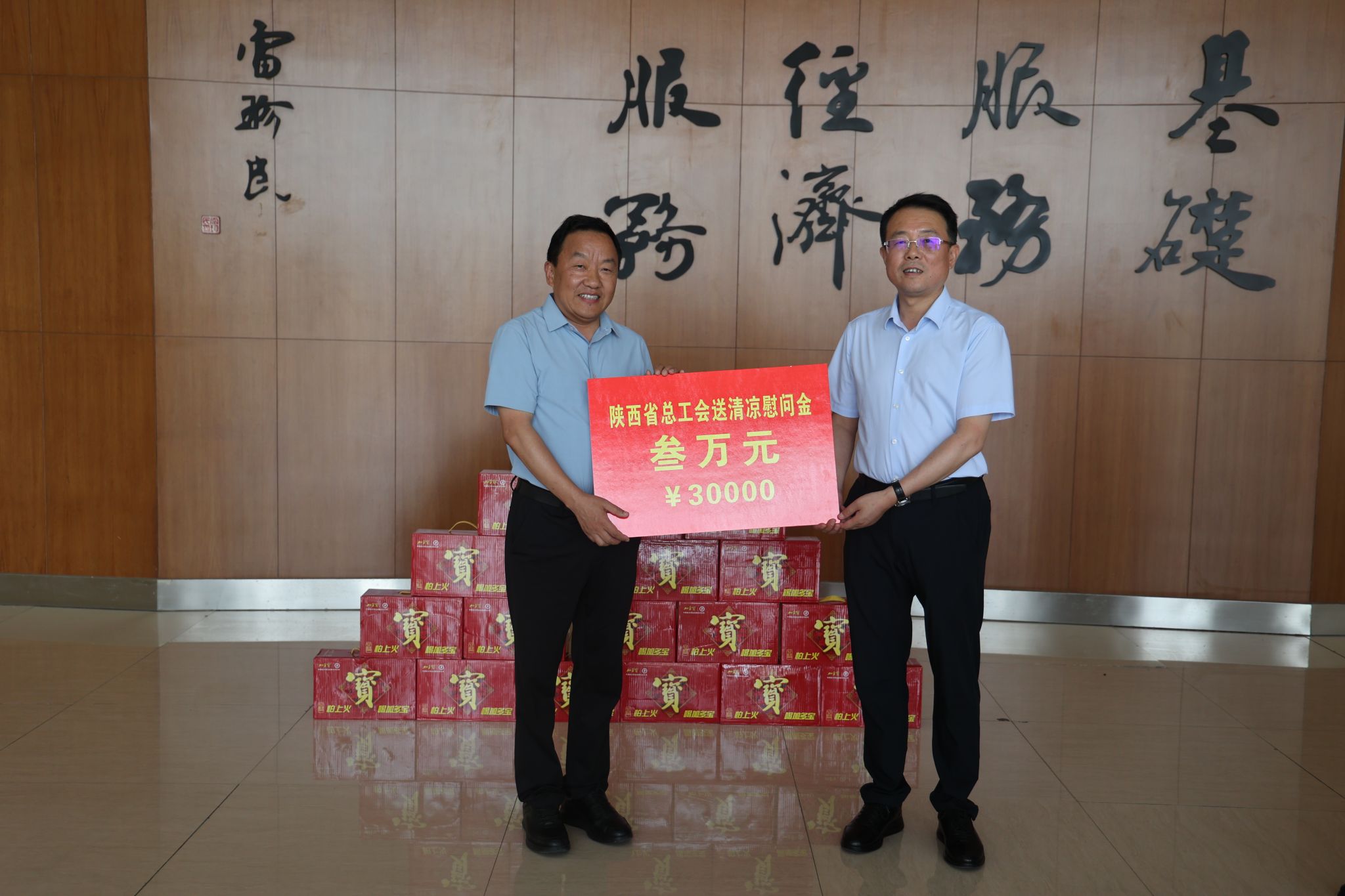 6月17日,陕西省总工会党组成员、副主席王永岗一行来开元官网开展“送清凉”慰问,陕西省教科文卫体工会主席徐富权,安康市人大常委会副主任、市总工会党组书记、主席赵立根,党委书记钟生海、副校长屈险峰等一同为开元官网一线科研人员、教师代表送去慰问品。