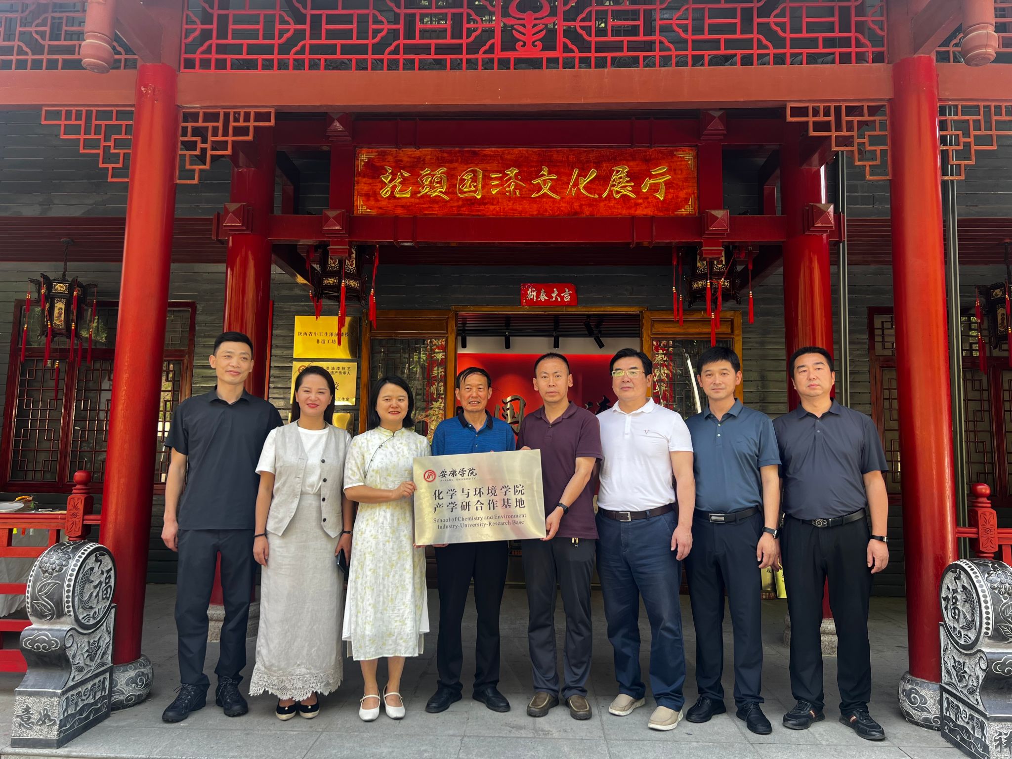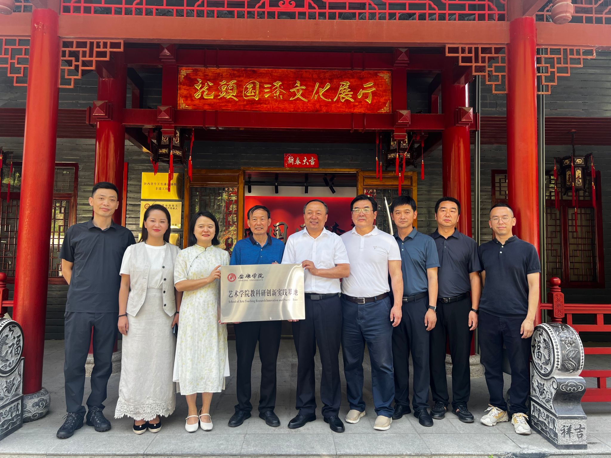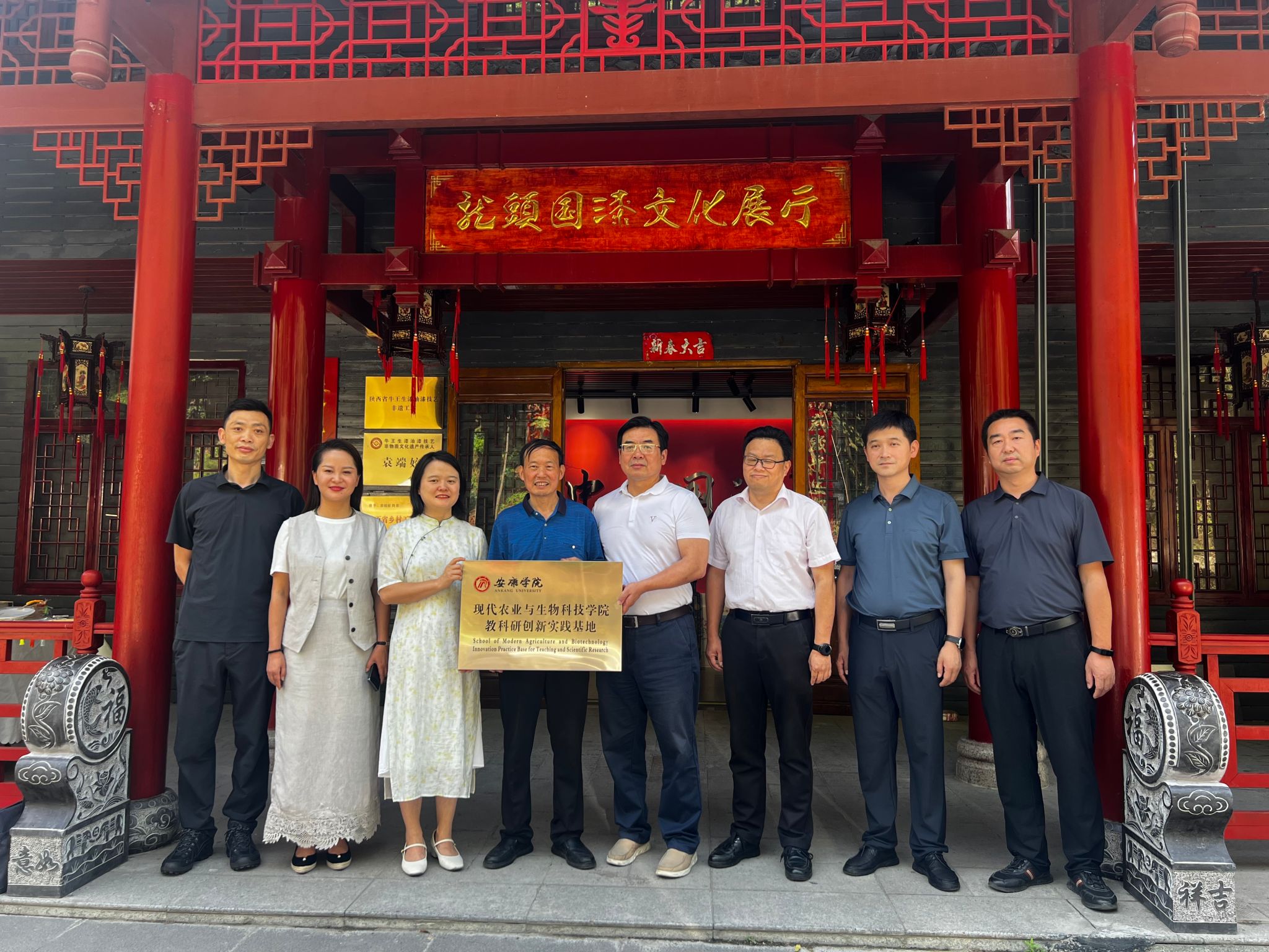 调研组实地视察了陕西龙头国漆文化产业有限公司产品展馆及工作室,双方现场举行了教科研创新基地揭牌仪式。公司副总袁端娇表示,将全力配合学校开展实践教学和教科研攻关,共同推动安康生漆产业技术创新和人才培养。