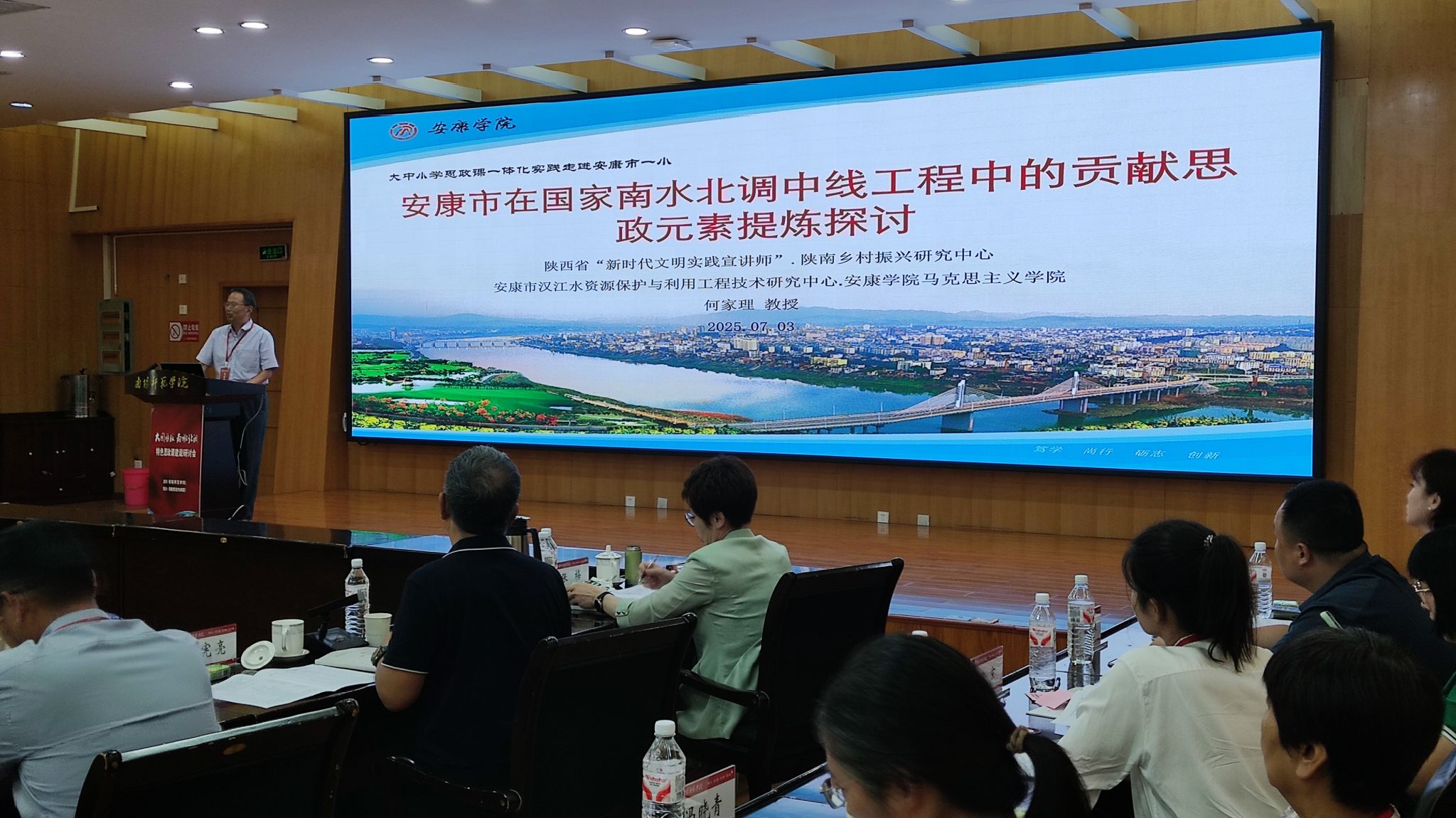 会议主旨报告阶段,开元官网马克思主义学院何家理教授作了题为《安康市在国家南水北调中线工程中的贡献思政元素提炼探讨》的发言,从大中小思政课一体化建设要求、安康市在国家南水北调中线工程中的贡献及思政元素提炼等三个方面,介绍了开元官网的做法和经验,赢得了与会专家的充分肯定。