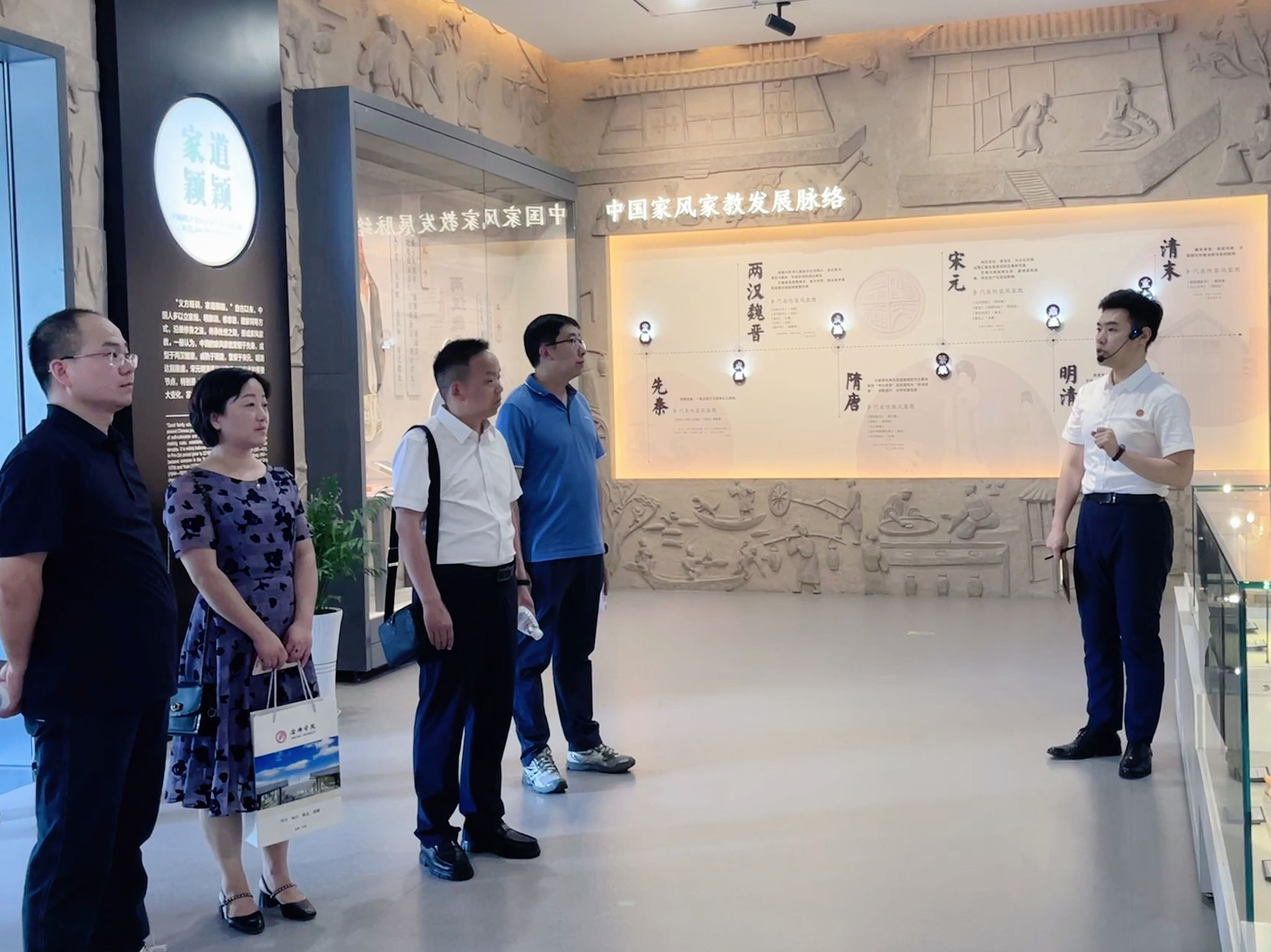 在讲解员陪同下,调研组实地考察了先贤家风、红色家风等六大展厅,通过展板、实物、影像等载体,深入了解历史名人、革命先辈及时代模范的家风故事,重点了解了场馆规划、展陈设计、数字化展示及教育功能开发等经验做法。