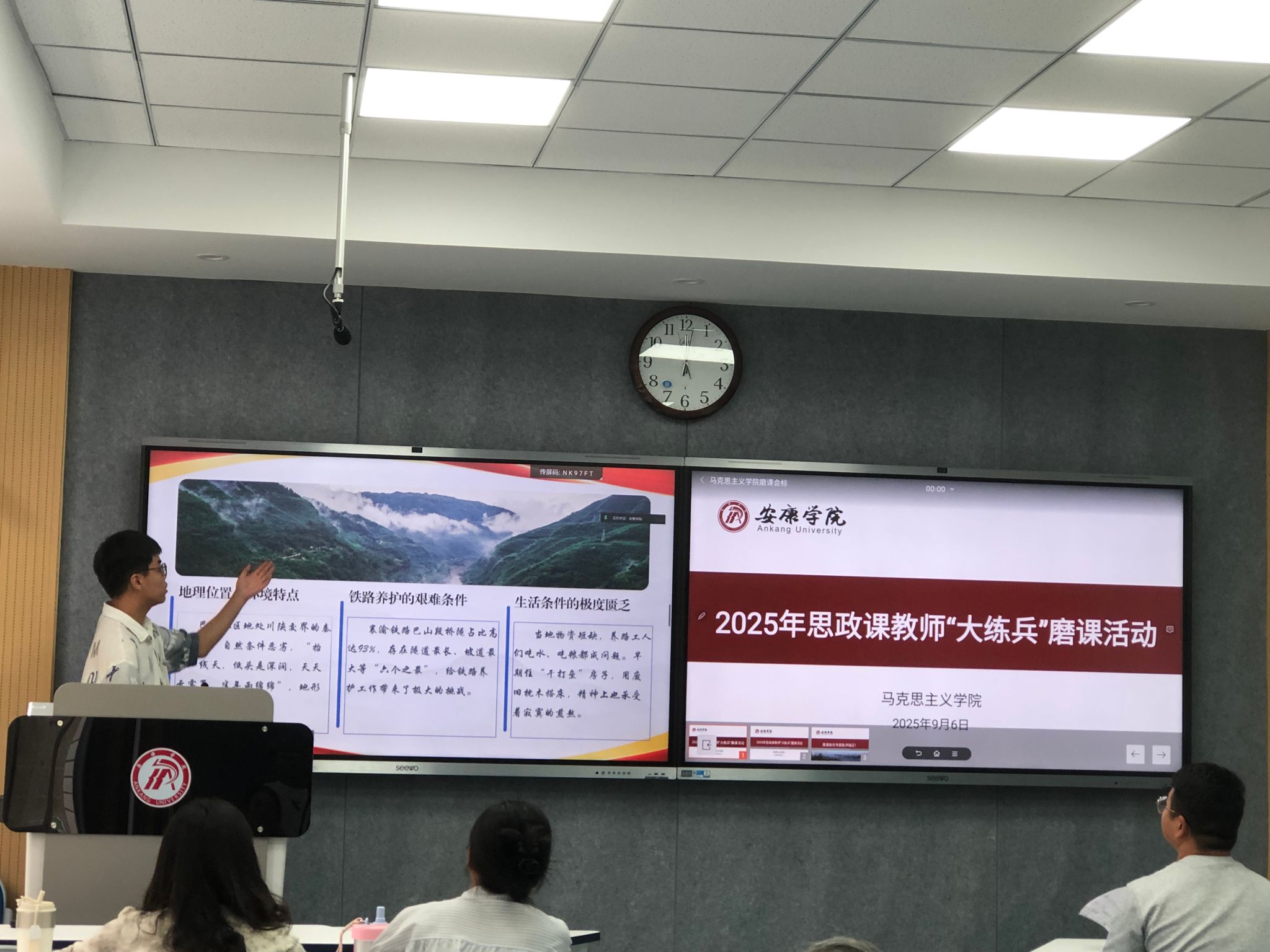 参赛教师在前期多次磨课的基础上,进一步聚焦思政课堂教学真问题,优化教学内容、精选典型案例、创新教学方法,依次进行了教学展示。各位专家结合自身丰富的教学经验与赛事评审视角,围绕教学目标设定、内容逻辑、案例契合度、课件设计、板书规范、教学创新性、信息技术融合、语言表达及教态仪容等维度,逐一对参赛教师进行细致点评与专业指导,提出了一系列具有针对性、实操性的改进建议。