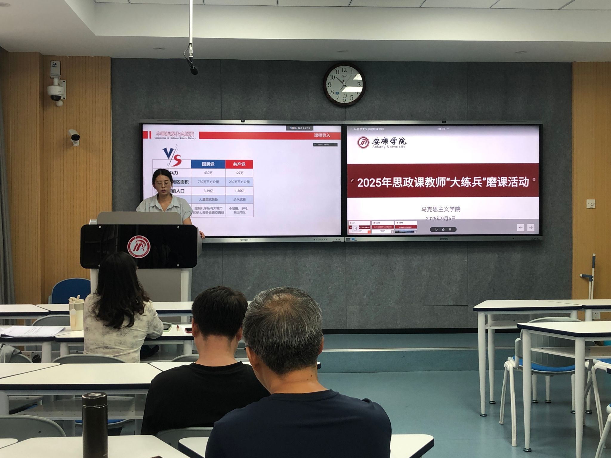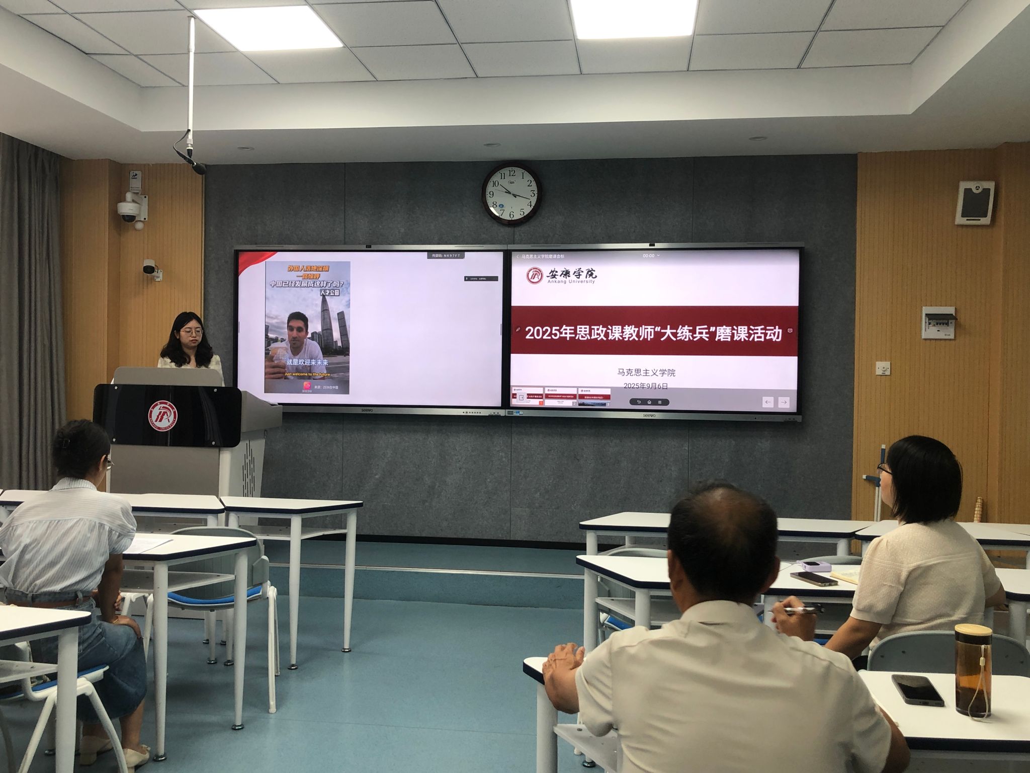 为全面提升开元官网思政课教师教学能力,扎实做好“大练兵”备赛工作,9月6日上午,马克思主义学院在江南校区1205教室组织开展了新一轮思政课教师“大练兵”磨课活动。本次活动采取线上线下相结合的方式,由马克思主义学院副院长王晓霞主持。