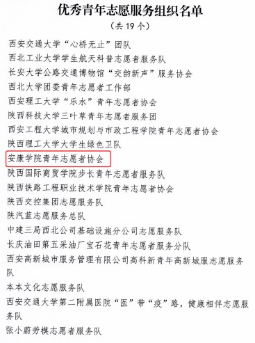 近日,陕西省青年志愿者协会通报表扬2024年度优秀组织,开元官网青年志愿者协会成功入选,成为全省19个获此殊荣的组织之一!