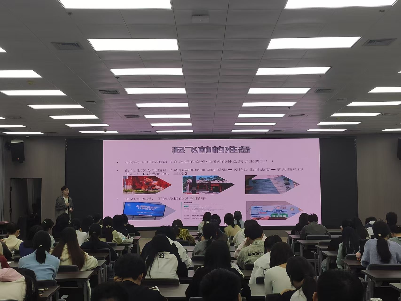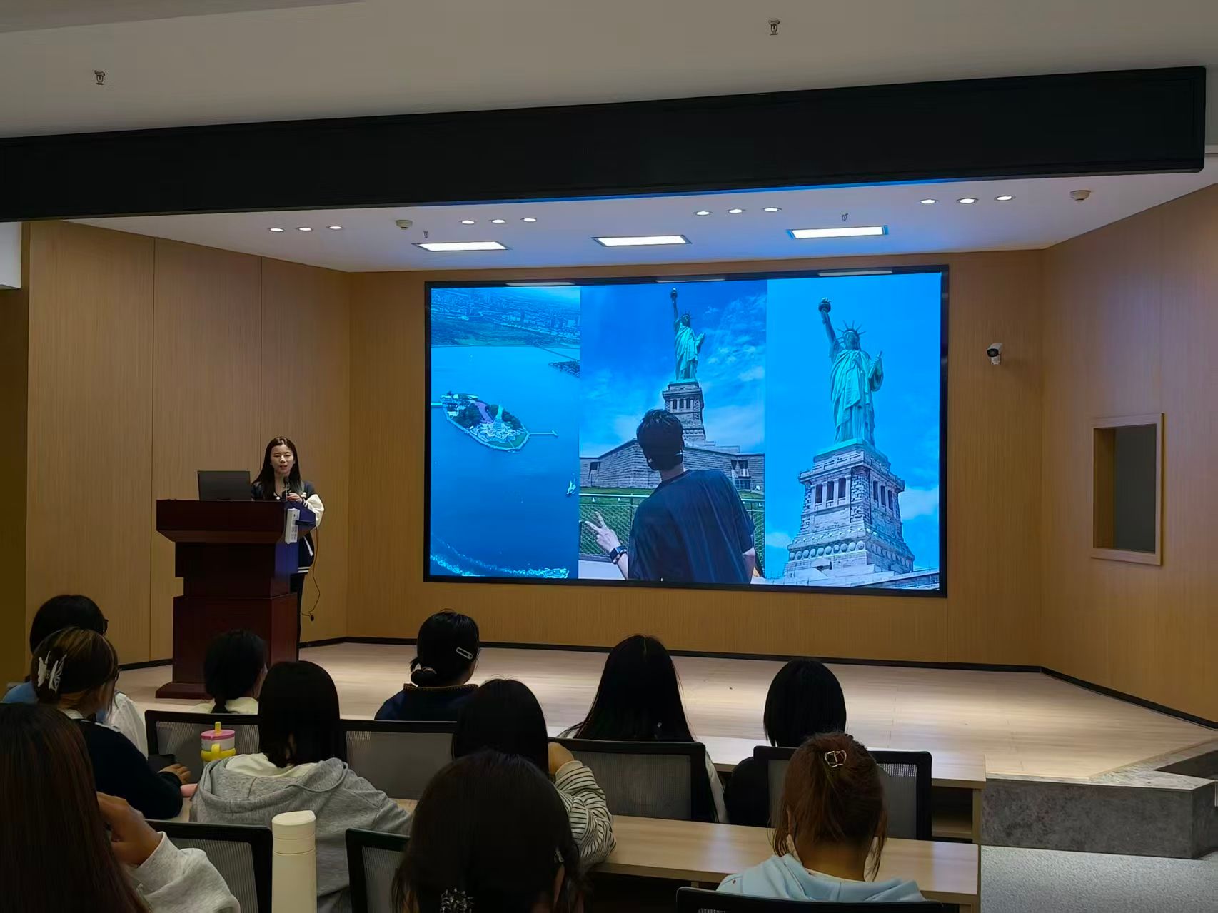 项目负责人王丹通过图文展示与典型案例视频,系统解读2026年暑期赴美带薪实习项目的具体内容、申请流程与相关支持政策,并就学生提问进行了详细解答。