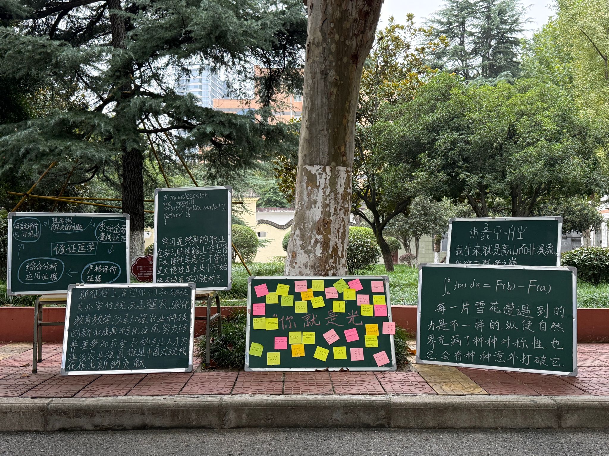 活动前期,体育学院广泛征集学生原创摄影、绘画、书法及音视频作品,同时创新性为全校12个学院定制特色文案,由学生以粉笔字创作并展示,充分调动跨学院师生参与热情。活动首日,现场隐去作品所属学院信息,集中展示不带专业标识的影像资料,引导师生通过投票猜测主办学院,引发广泛讨论;次日则通过海报揭晓答案,并将影像替换为体育生专业训练、赛场竞技的精彩瞬间,从文艺创作到运动拼搏的强烈反差,直观凸显“拒绝定义、多元成长”的活动主题。此外,现场还设置了“反定义”心声墙,吸引了众多学生驻足参与,用便利贴书写对多元成长的思考与宣言,成为校园里一道兼具思想性与互动性的风景线。
