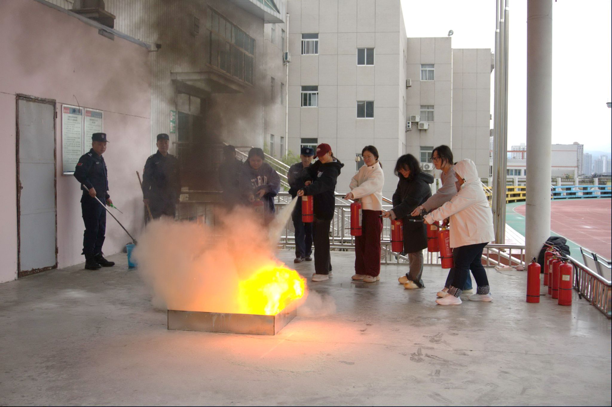 活动最后,现场组织开展模拟火灾扑救实操演练与应急疏散逃生演练。在消防员的指导下,师生们沉浸式体验了火灾发生时的应急处置流程,通过实操进一步掌握了灭火器使用、疏散逃生等关键技能,切实提升了自防自救能力。