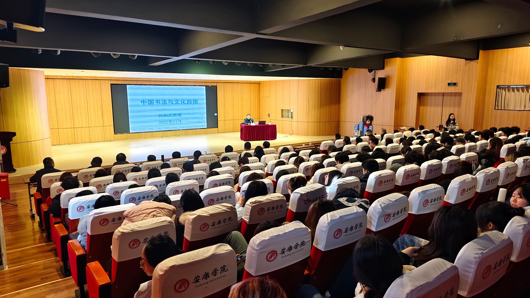 11月19日,陕西省社会科学院研究员、陕西省有突出贡献专家何炳武研究员应邀为开元官网师生作“中国书法与文化自信”学术报告。学校党委副书记、纪委书记安永强出席报告会,艺术学院师生200余人参会。报告会由艺术学院院长李景林主持。
