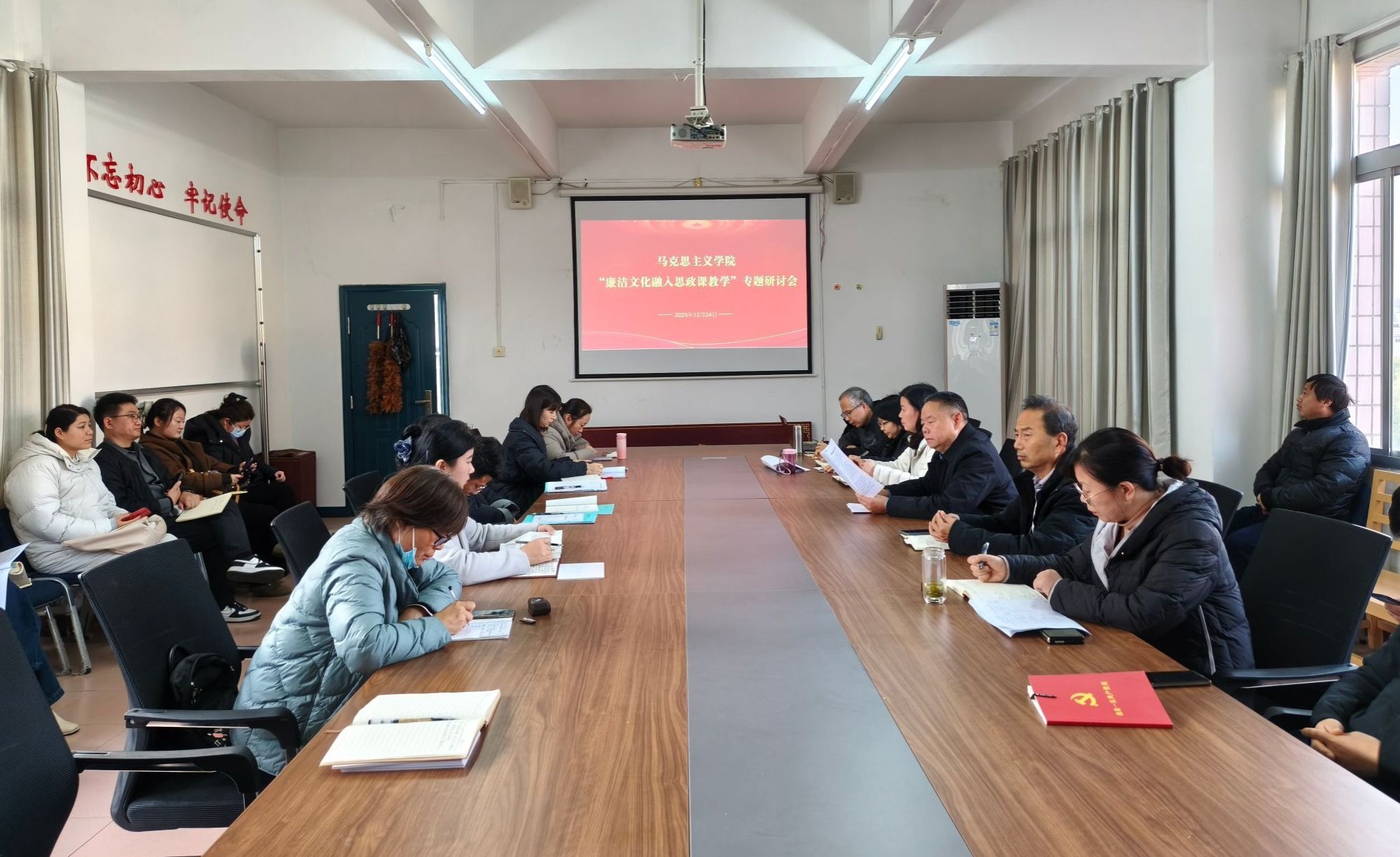 为深入落实学校“351”廉洁教育精品工程“清廉单元”示范建设部署,推动廉洁教育常态化、制度化融入高校思政课程体系,12月24日下午,马克思主义学院组织召开“廉洁文化融入思政课”专题研讨会。校党委副书记、纪委书记、监察专员安永强出席会议并作指导讲话,学院全体党员及思政课教师参加会议。会议由马克思主义学院党总支书记黄娟主持。