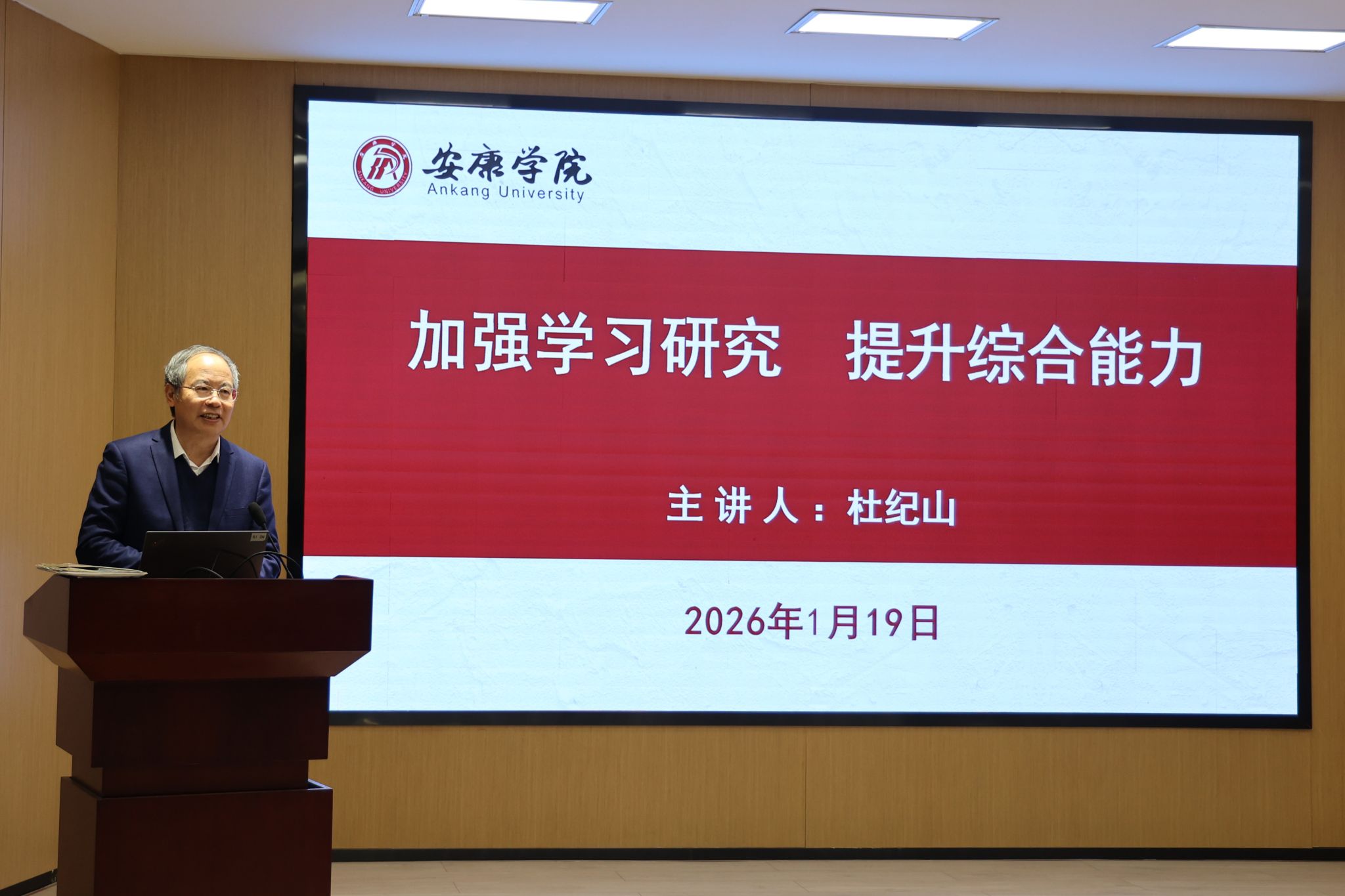 1月19日上午,国家林业和草原局林业和草原改革发展司原一级巡视员杜纪山研究员应邀来校,为青年教师作题为“加强学习研究、提升综合能力”的专题报告,校长余劲出席报告会。报告会由科研处处长成党伟主持。