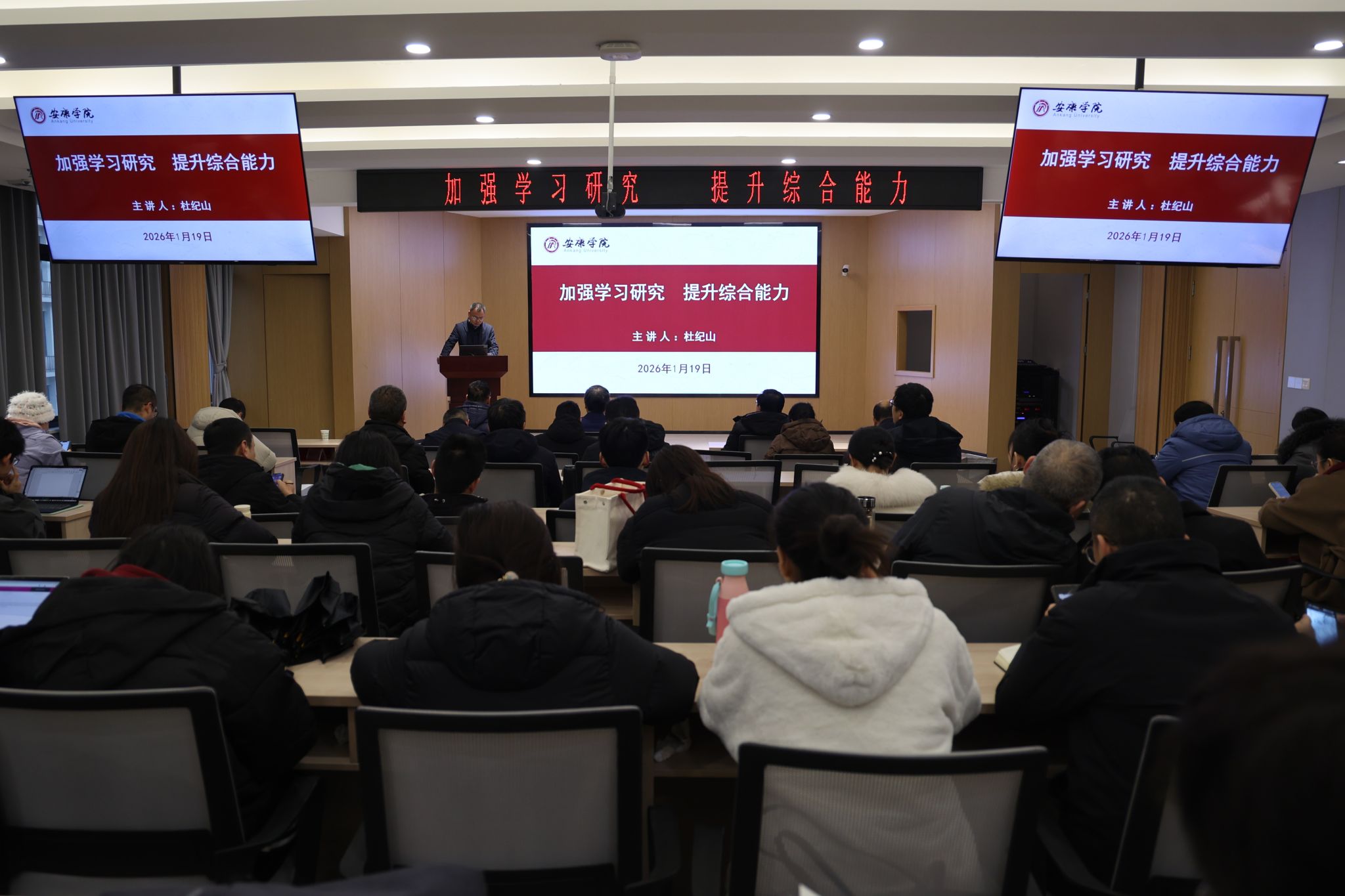 报告中,杜纪山结合个人学习、工作、生活经历,从学习方法、研究方法、论文写作、自我管理等六个方面,系统阐述了青年人才提升综合能力、实现专业发展与人生价值的实践路径。报告内容翔实、逻辑严谨、视野开阔,展现了深厚的学术底蕴和务实的工作风格,在场青年教师深受启发。