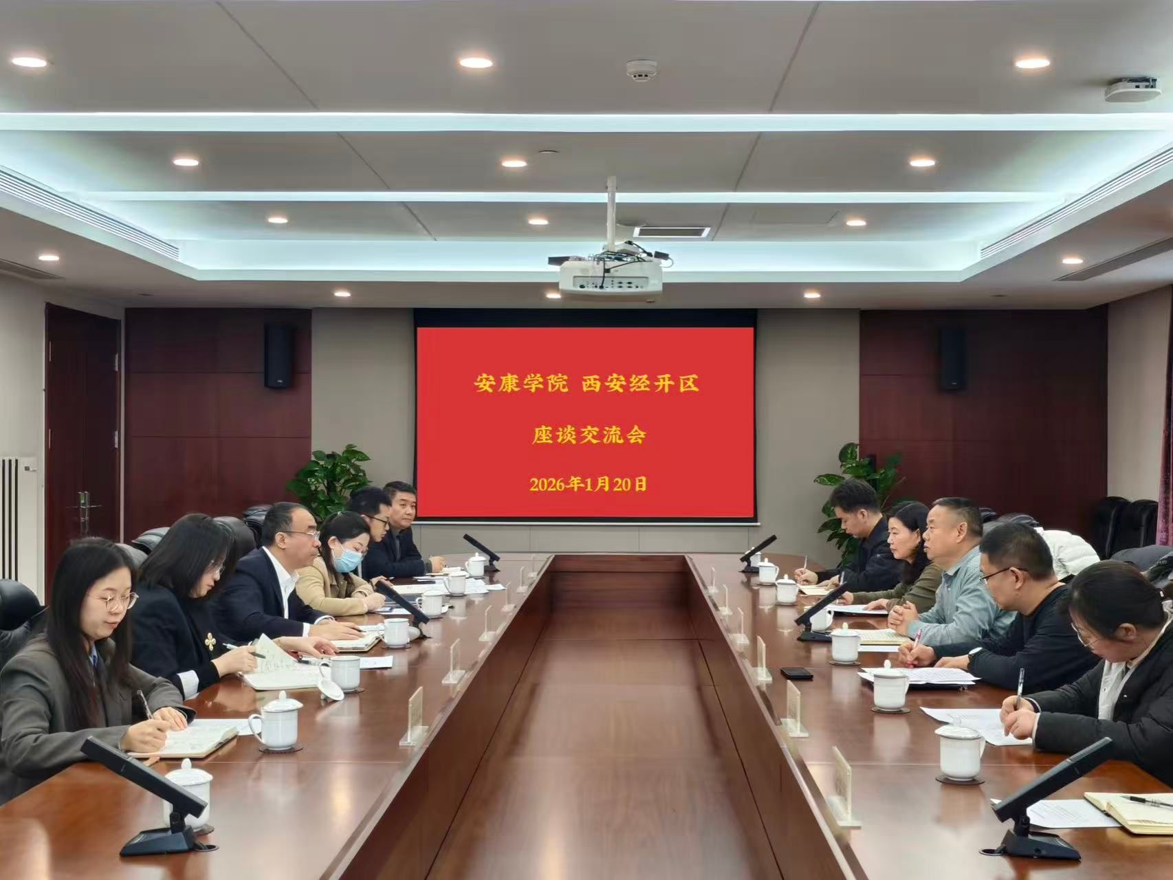 在西安经开区座谈会上,经开区党工委委员、管委会副主任杨剑系统介绍了经开区作为省、市经济发展重要引擎的产业布局、创新生态及人才引进政策。经开区组织人事部、教育体育局、社会事业局、投资合作局等部门负责人结合区内机关、企业、学校等单位需求,围绕“十五五”规划重点项目,详细介绍了在专业人才、党务宣传、行政管理、中小学教育等领域的岗位需求,并表达了与开元官网在实习基地建设、项目研发、人才招聘等方面深化合作的意愿。安永强表示,经开区的快速发展为开元官网毕业生提供了广阔舞台,双方应加强供需对接。经充分交流,双方初步达成建立常态化人才信息对接机制的共识,为后续精准推动毕业生高质量就业奠定基础。