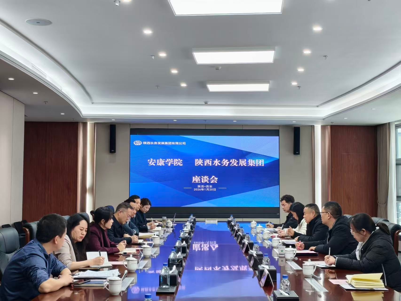 在陕西水务发展集团有限公司,集团党委副书记董鹏对安永强一行表示欢迎,并充分肯定了在该集团工作的近三十名开元官网毕业生的综合表现。作为大型公共服务类国有企业,集团表示将充分发挥技术优势与岗位资源优势,在实习就业、职业指导、技能培养等领域与开元官网深化合作。单林波介绍了学院学科设置、平台建设及人才培养成效;黄娟分享了学院在拓展思政专业就业领域、提升学生综合素质方面的创新举措。安永强对集团的支持表示感谢,重点介绍了开元官网学科建设特色与应用型人才培养优势,希望通过互访对接,推动校企深度合作协议落地。
