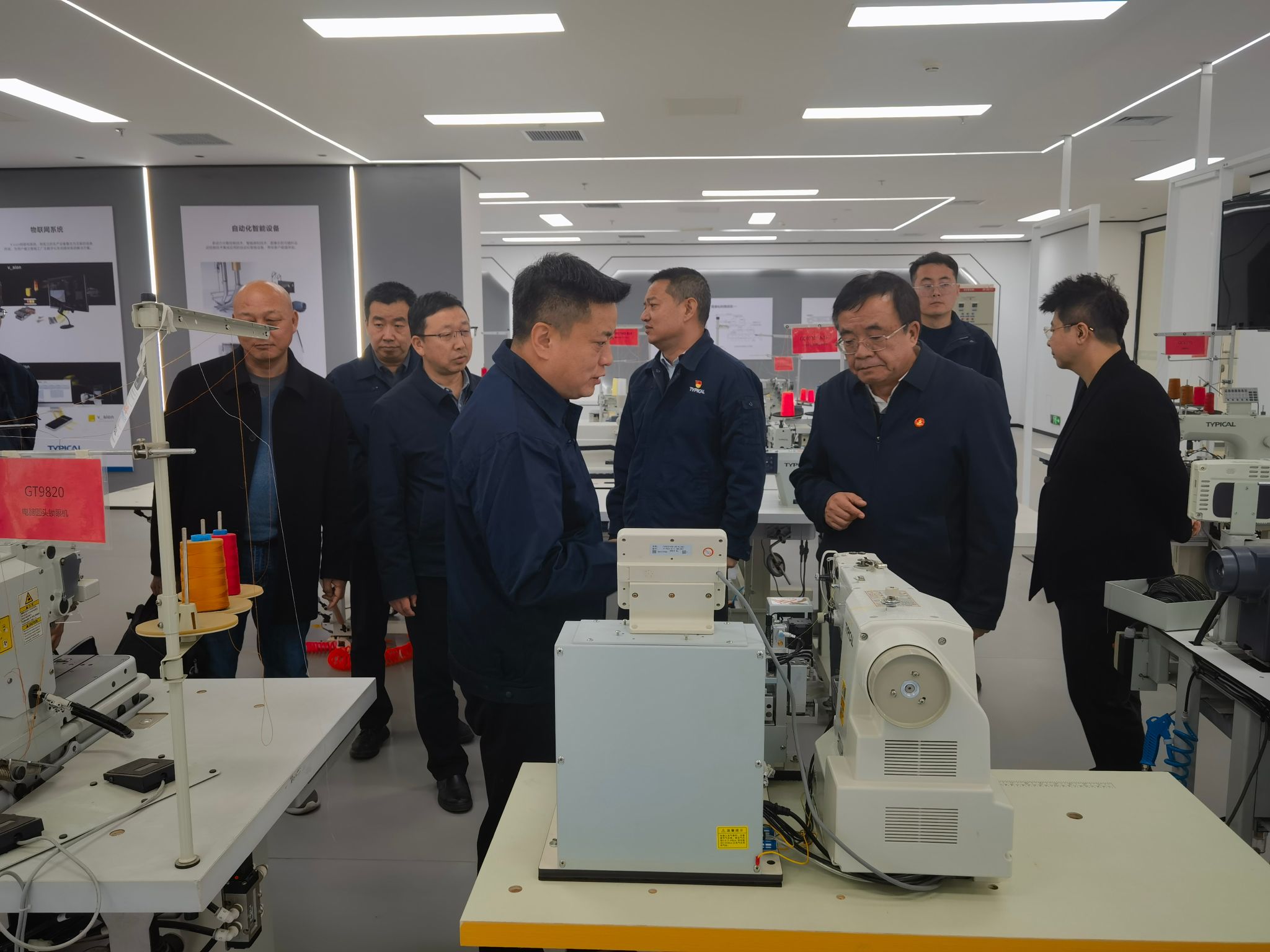 余劲一行首先参观了企业现代化生产车间与产品展厅,实地观摩了智能化生产流程、先进技术应用场景与新产品研发成果,详细了解了企业从上海迁陕近八十年来的发展历程、战略转型后的以缝制设备为根本的精密制造业务布局,以及新时期企业在技术创新、专业人才引育方面的现实需求。
