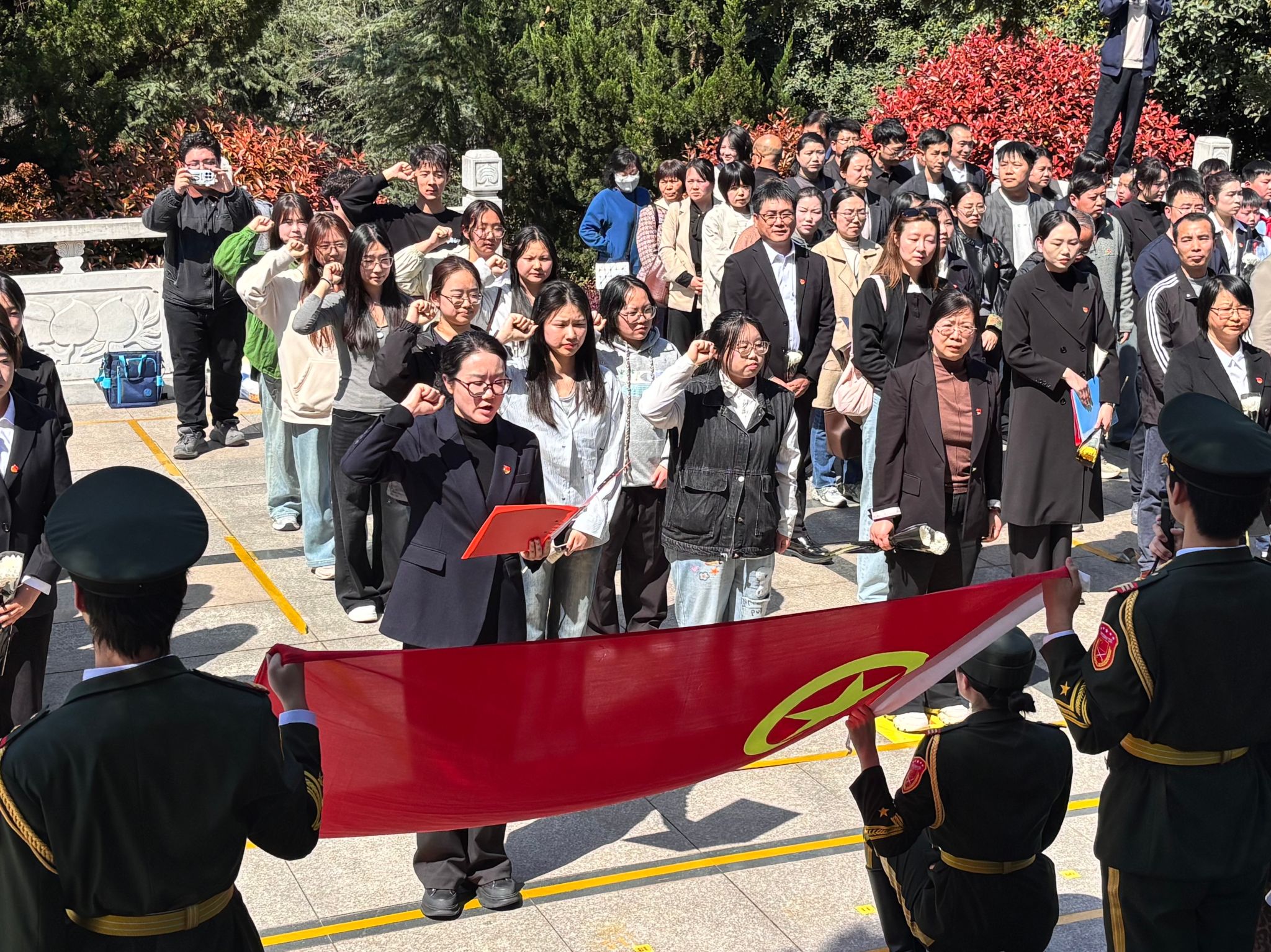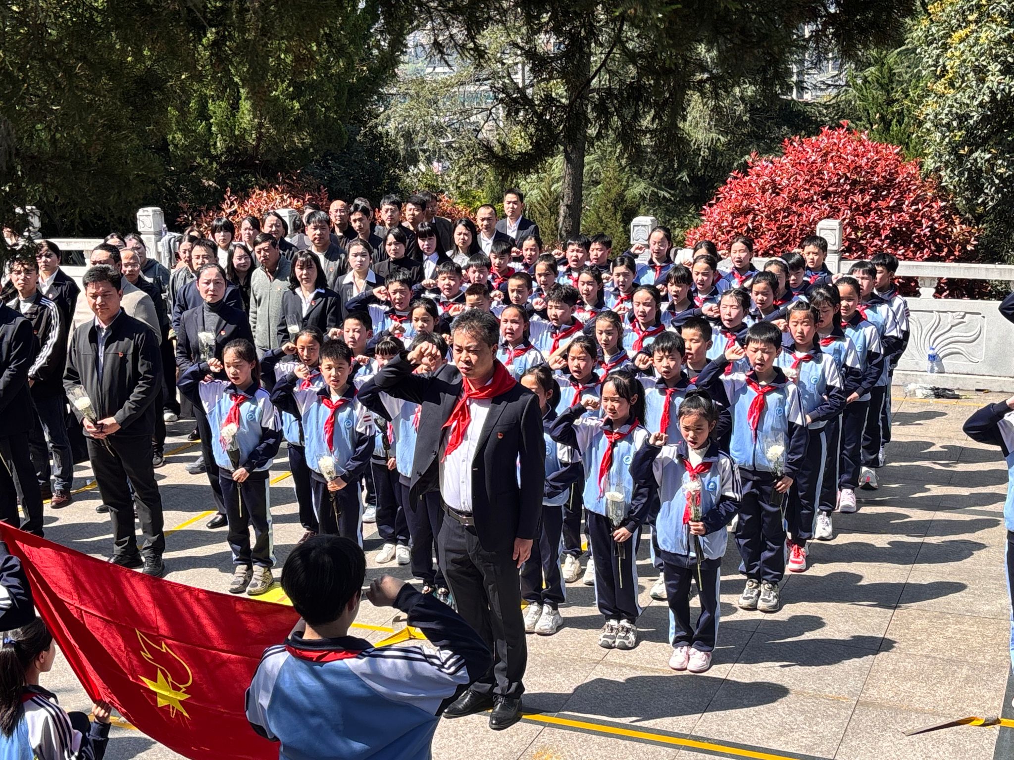 活动伊始,单林波作开幕致辞。他指出,一体化建设的核心在于打破学段壁垒,实现课程目标纵向衔接、教学内容螺旋上升、育人资源协同共享。本次联合祭扫正是将“'大思政课'我们要善用之,一定要跟现实结合起来”的重要指示落到实处,通过大学带小学、党员带团员、团员带队员的传帮带机制,构建全链条、进阶式育人共同体,让不同学段的思政教育同向同行、同频共振。