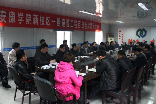 3月22日上午,学院在新校区陕西八建项目部会议室举行“新校区一期工程建设百日会战誓师大会”。学院院长、新校区建设总指挥王兴林,党委副书记、纪委书记闵小平,副院长、新校区建设副总指挥杨行玉出席大会。学院办公室、国资处、图书馆、教务处、合作与发展处、农学与生命科学院、政史系、经管系、电信系负责人,指挥部全体工作人员参加了会议。省八建、省六建、省四建、省机械化、安康城建公司、安康兴达公司、城市园林公司、晟方园林公司、丫丫绿化公司、安康宏远建设集团等承担新校区一期工程建设任务的施工企业,项目部负责人,天成监理公司、东龙监理公司、安信监理公司、中基监理公司、伍诚项目管理公司等负责人与会。会议由杨行玉主持。