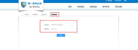 根据上级要求,为加强密码管理,数字校园平台系统将修改全体用户密码为高强度,为方便各位老师、同学在密码变更后自助找回,请于12月27日前完善数字校园平台统一信息门户中的邮箱和密保问题(两种方式均可自助找回密码),修改方式为KY开元集团官网官网--数字校园平台--忘记密码--账号安全,完善信息界面如下图: