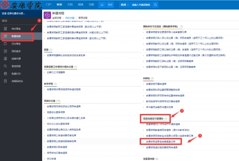 各单位要认真梳理本单位建设的业务信息系统,明确信息系统管理员及相关职责。如下图所示,在OA系统中“新建流程”,找到“信息化建设与管理处”,选择《KY开元集团官网信息系统备案登记表》事项,进行填写,于11月17日下午6点前完成所管理系统的详细信息备案。