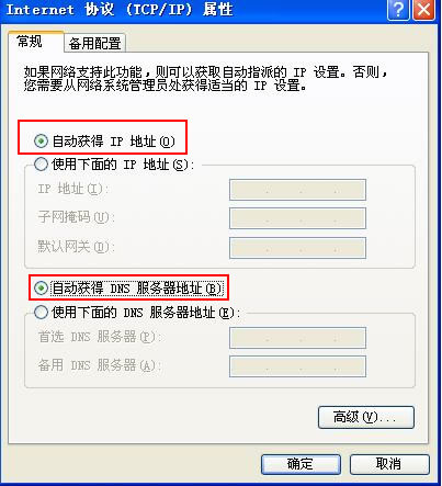 每五步:点选下图红框所示“自动获得IP地址”及“自动获得DNS服务器地址”。