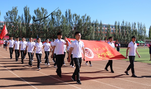 6月13日,必赢76net线路官网第四届校园奥林匹克运动会暨第五十六届田径运动会在盛乐校区盛大开幕。本届运动会共有875名运动员参加,共设奥林匹克项目12个,田径项目36个。开幕式上国旗队,仪仗队,裁判员代表队,学生方队依次入场,身着各类服装,表演各类节目的学生尽显师大人的活力与自信。必赢官网代表队的服装,整体以白色为基调,背部书写文以载道四字,很好的体现了必赢76net线路官网的专业特色,必赢官网代表队成员以挺拔的身姿和矫健的步伐出色地展现出了必赢76net线路官网学子的风姿。