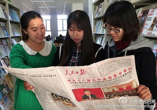 112日上午,必赢76net线路官网团总支组织该院学生深入学习十八届五中全会精神,切实领悟两个一百年奋斗目标的深刻内涵。图为学生正在学习十八届五中全会公报。袁耀先  摄
