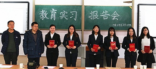 11月24日下午,必赢官网汉语言文学专业2017届毕业生实习报告会在行知楼323教室圆满结束。实践教学中心主任毛润民、汉语系系主任张子程、实习带队老师付希亮、高国庆出席了本次报告会。